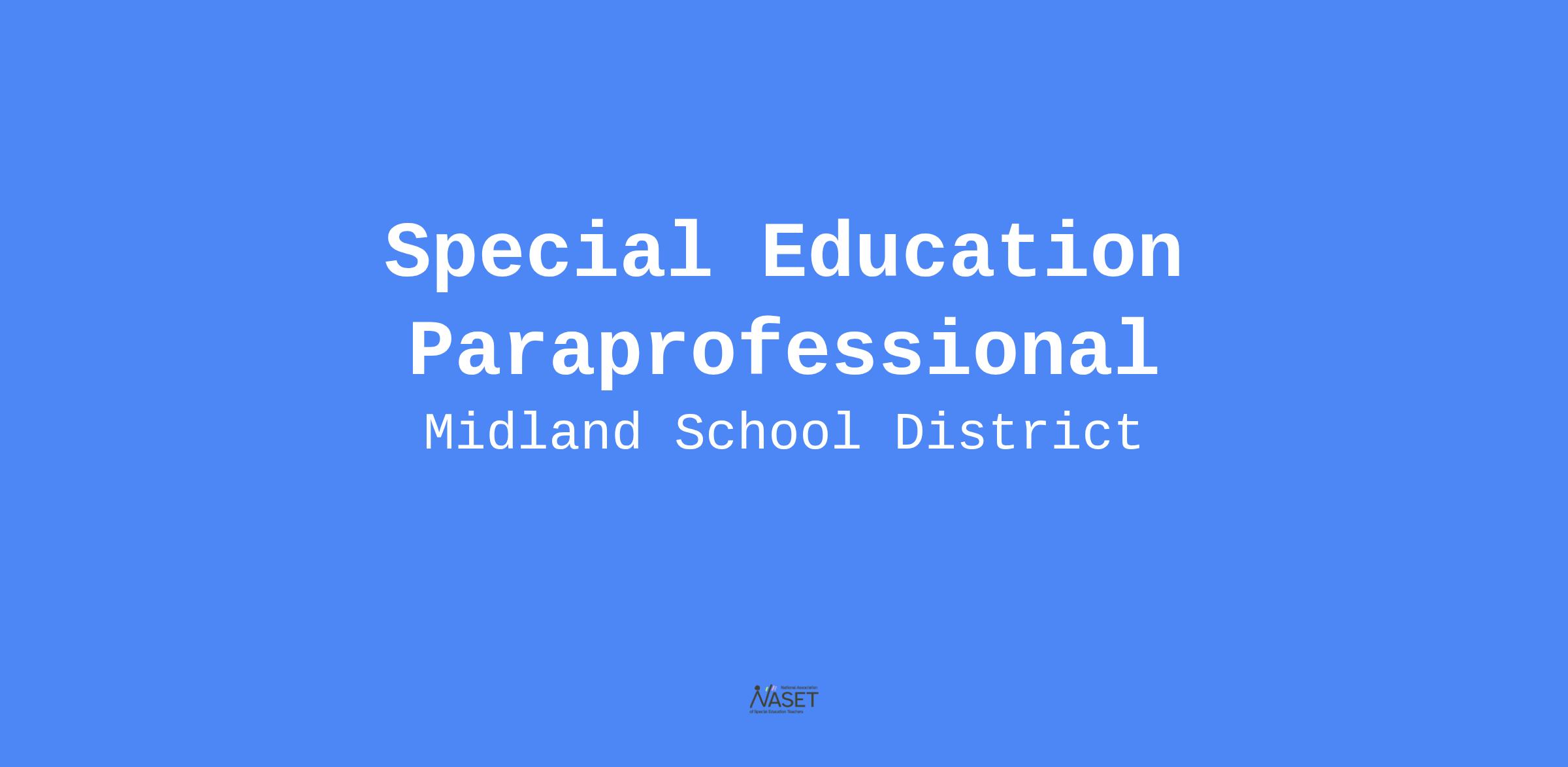 The Midland School District has an opening for a Special Education Paraprofessional for the current school year. This position is intended to support the certified teachers in meeting the instructional, educational, behavioral, and social-emotional needs of IEP entitled students in the classroom.