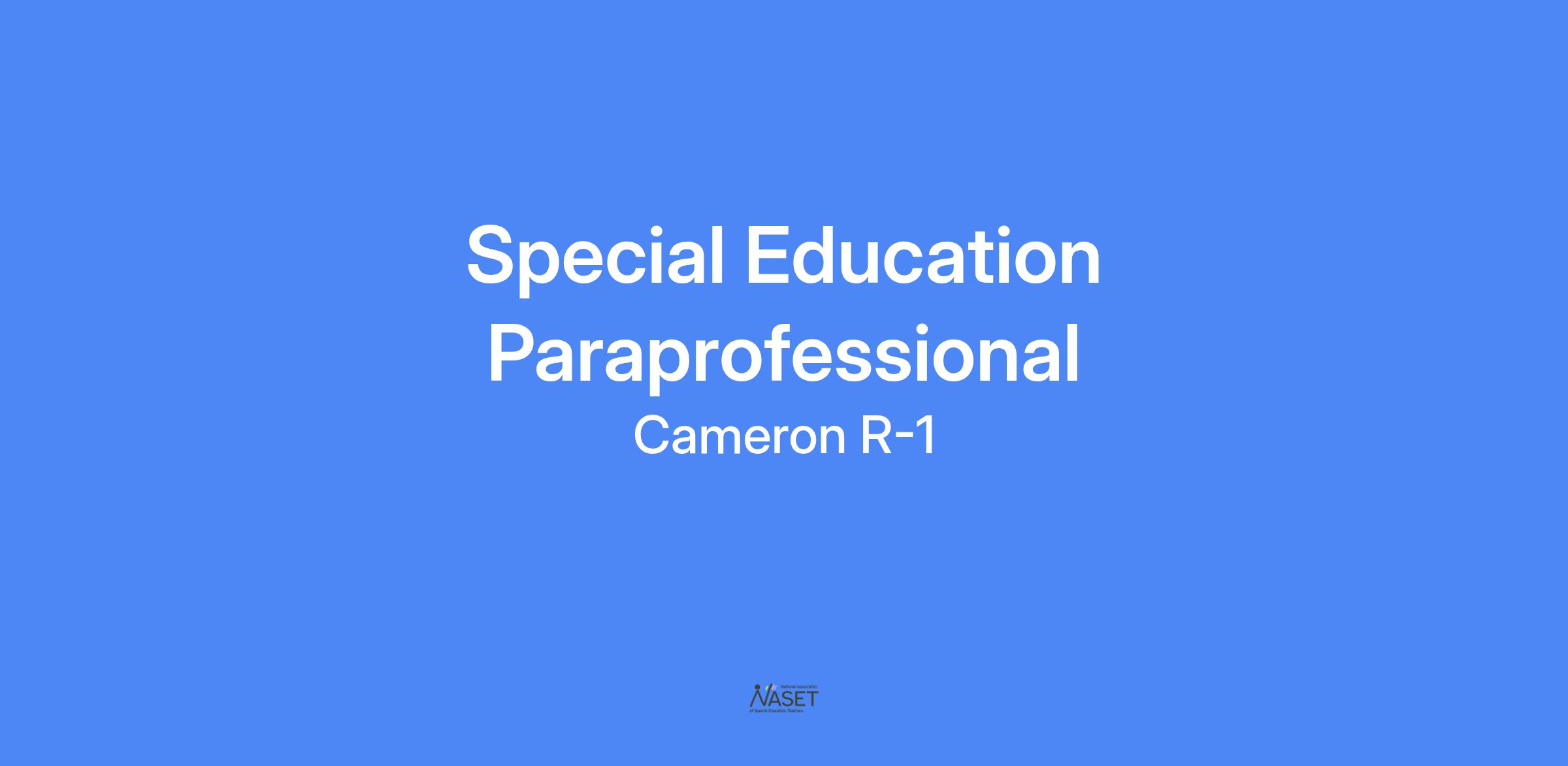 The Cameron School District has an immediate opening for a Special Education Paraprofessional at Cameron Intermediate School. Applicants should have 60 college hours and upload a copy of your transcripts with the application; or be willing to take and pass the MEGA (Missouri Educator Gateway Assessment) assessment for paraprofessionals or complete a required 20 hour substitute teacher training upon hire. The goal of this position is to assist the teacher to achieve teaching objectives by working with individual students or small groups. To establish good relationships with students and with staff members and to assist with helping students achieve skills.