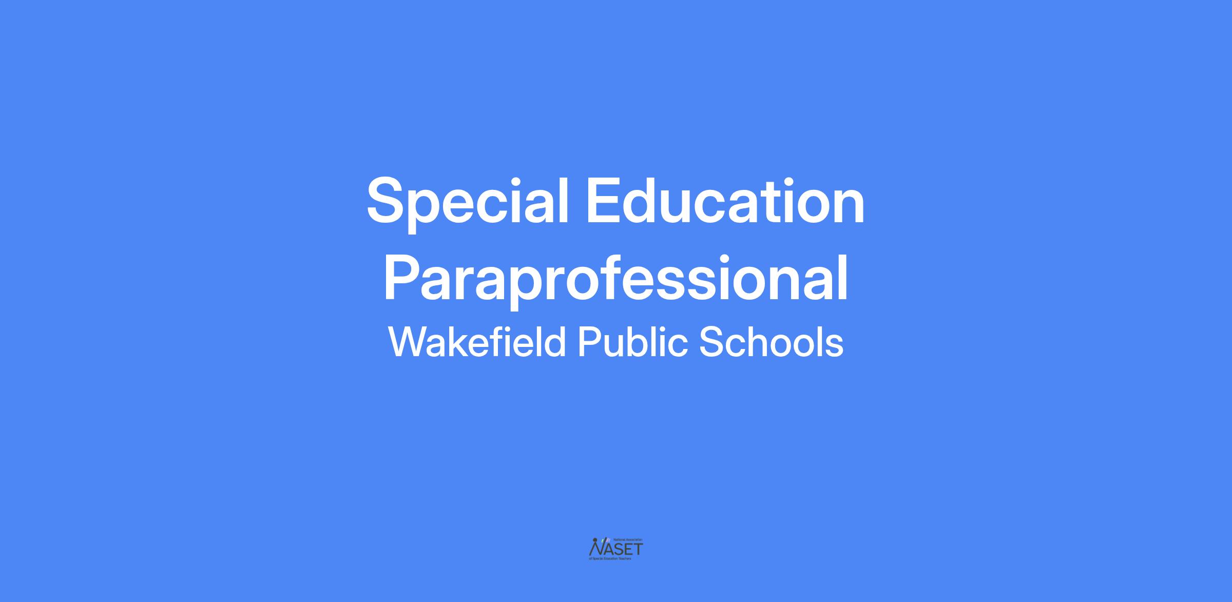Wakefield High School is looking for a paraprofessional to work with students in grades 9-12 across academic areas. The main responsibilities will include supporting students on IEPs in their high school classes by ensuring accommodations are being implemented, under the direction of the content teacher and special education teacher.