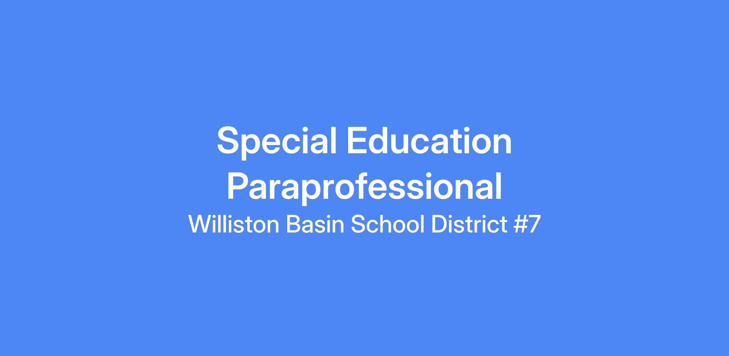Special Education Paraprofessional Williston Middle School Central Campus