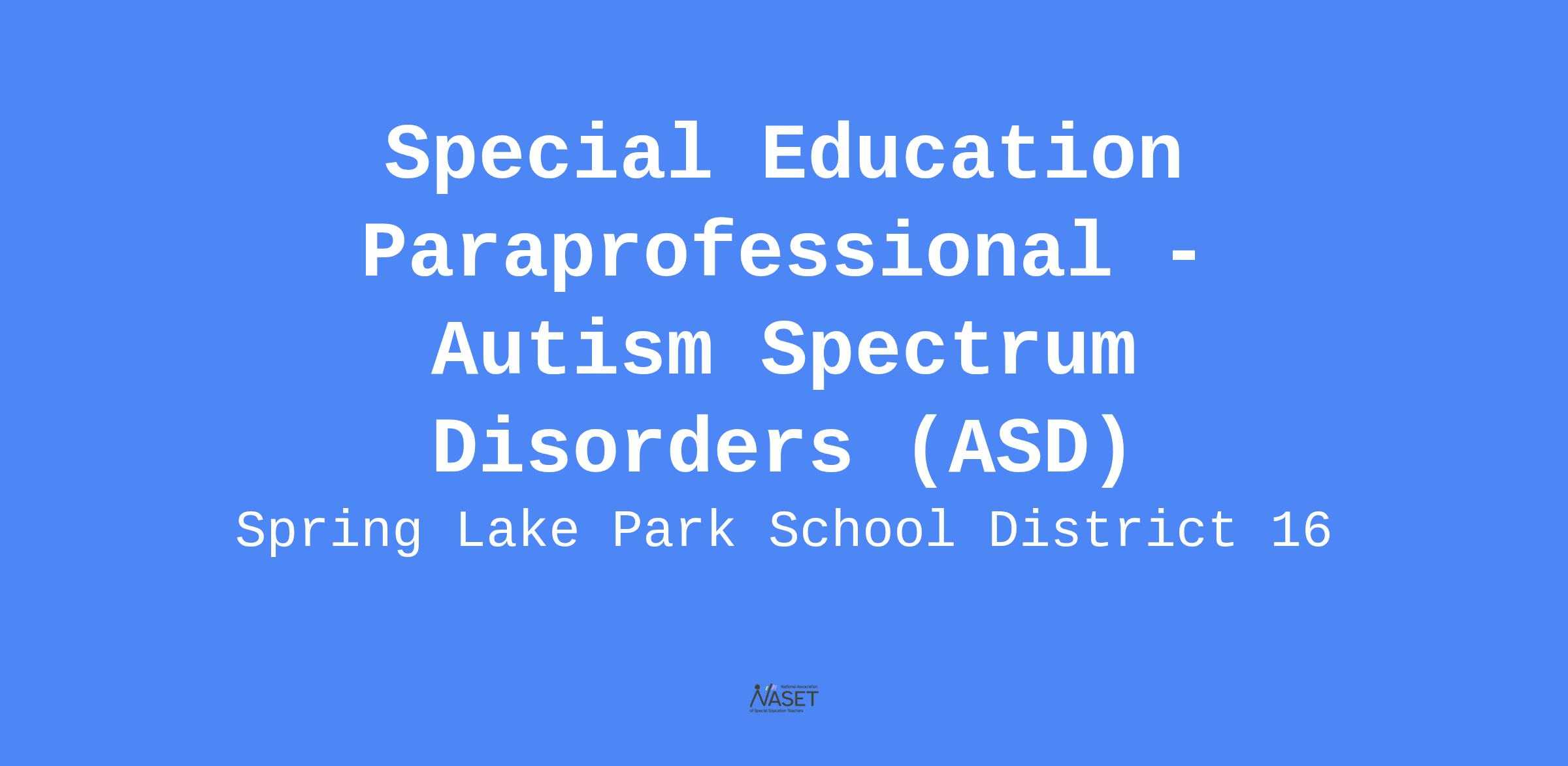 A Special Education Paraprofessional at Spring Lake Park High School, helping primarily support students with Autism Spectrum Disorders in grades 9-12 in a centerbased classroom as well as general education classrooms.