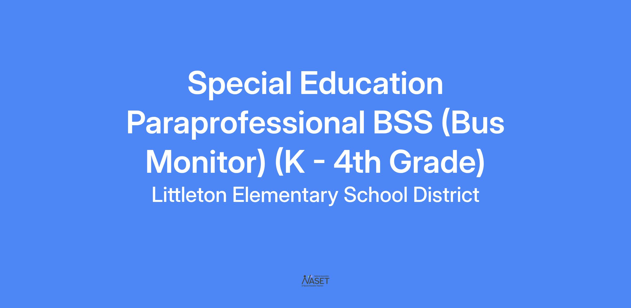 Special Education Paraprofessional BSS (Bus Monitor) (K - 4th Grade)