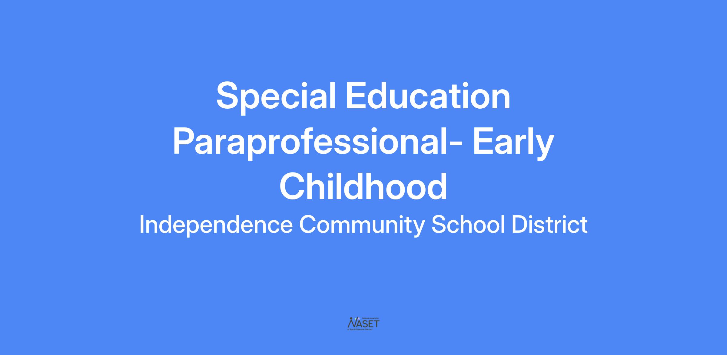 Preschool Special Education Paraprofessional - Part Time - 4.5 hrs per day