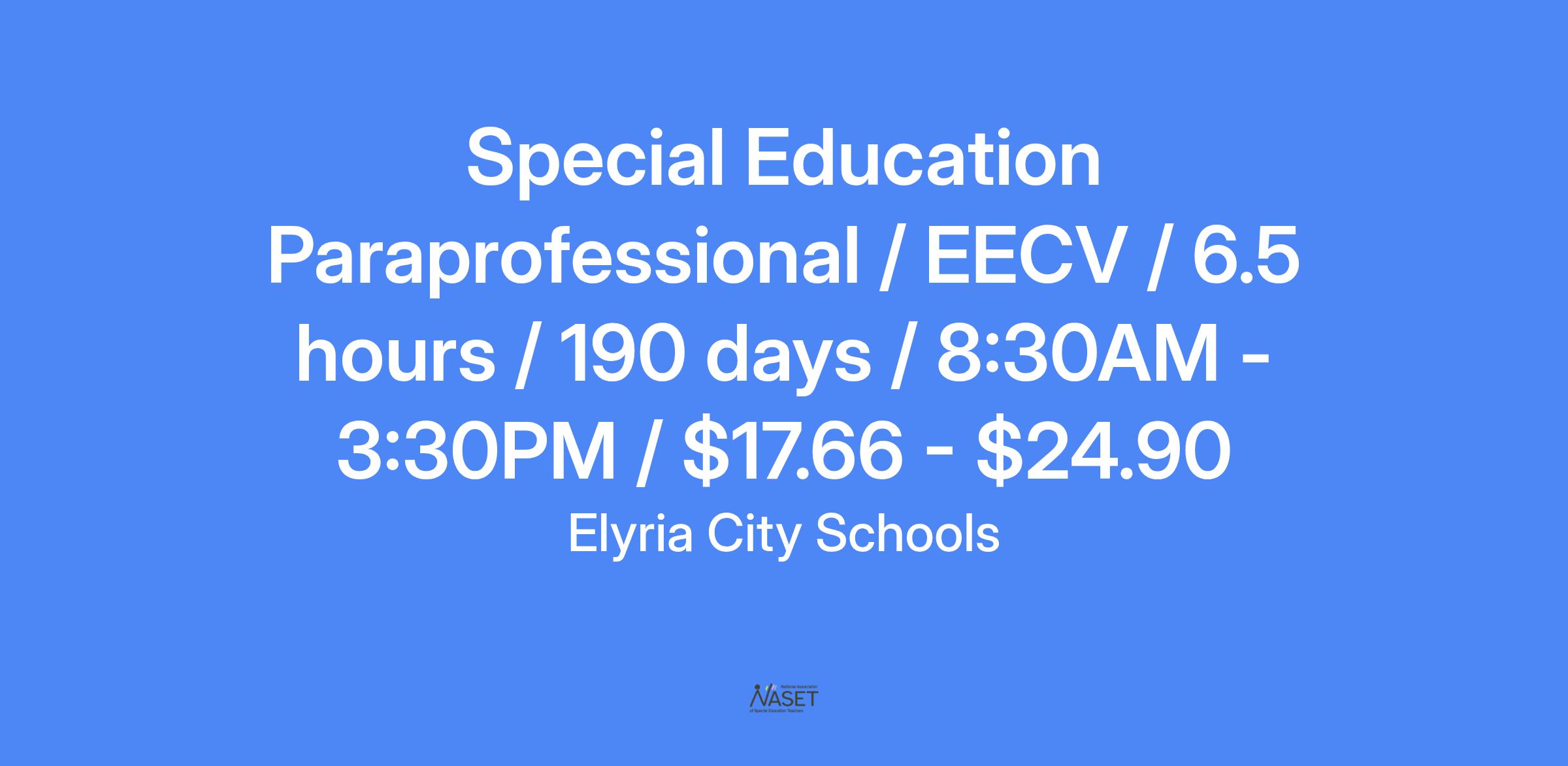 Special Education Paraprofessional / EECV / 6.5 hours / 190 days / 8:30AM - 3:30PM / $17.66 - $24.90