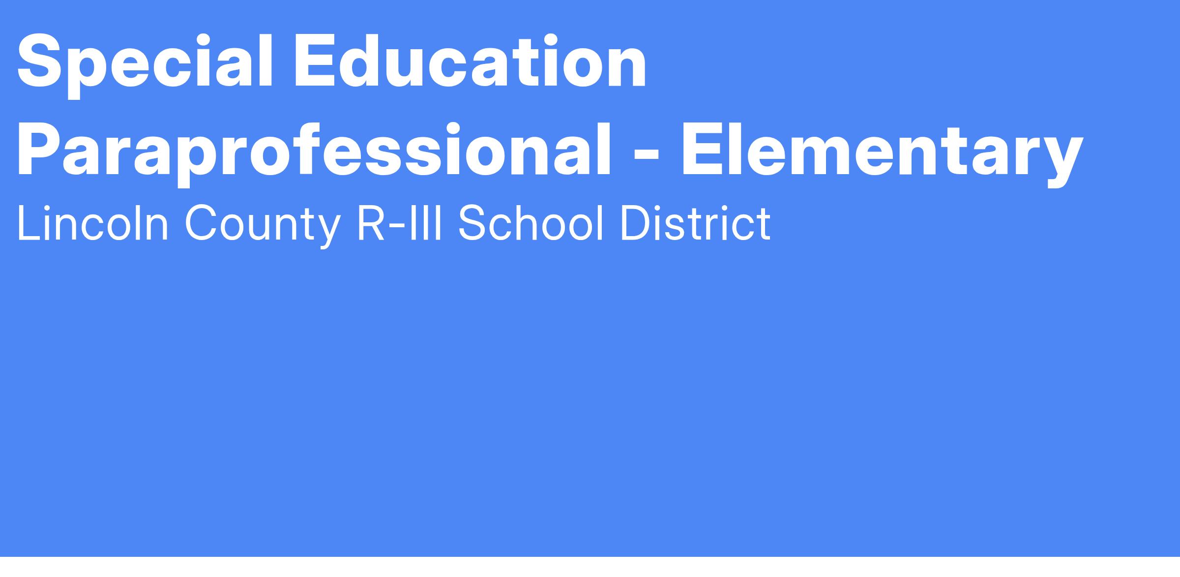 OPEN POSITIONS: Special Education Paraprofessional