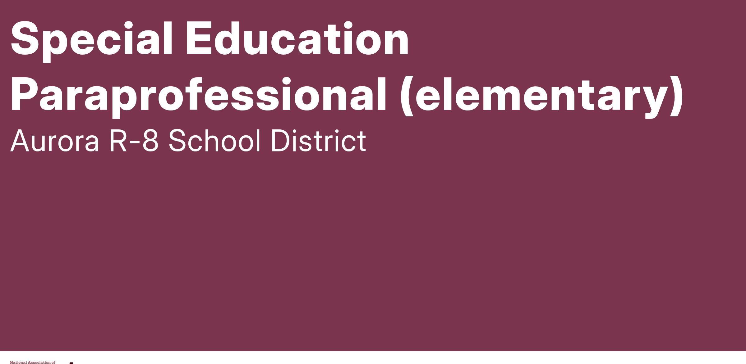 Aurora R-8 is seeking special education paraprofessionals to work with students at the K-6 level. Must have 60 college hours, have completed the 20 hour sub course, have a sub certificate, or have passed the para test. A college degree or someone working towards a teaching degree is preferred. This person must be willing to work with students with behavior as well as assist with academics or self-care. There will be potty-training, lifting, feeding, etc. The person must be able to document well, communicate with a variety of people, and be able to work in many classrooms and with many teachers.