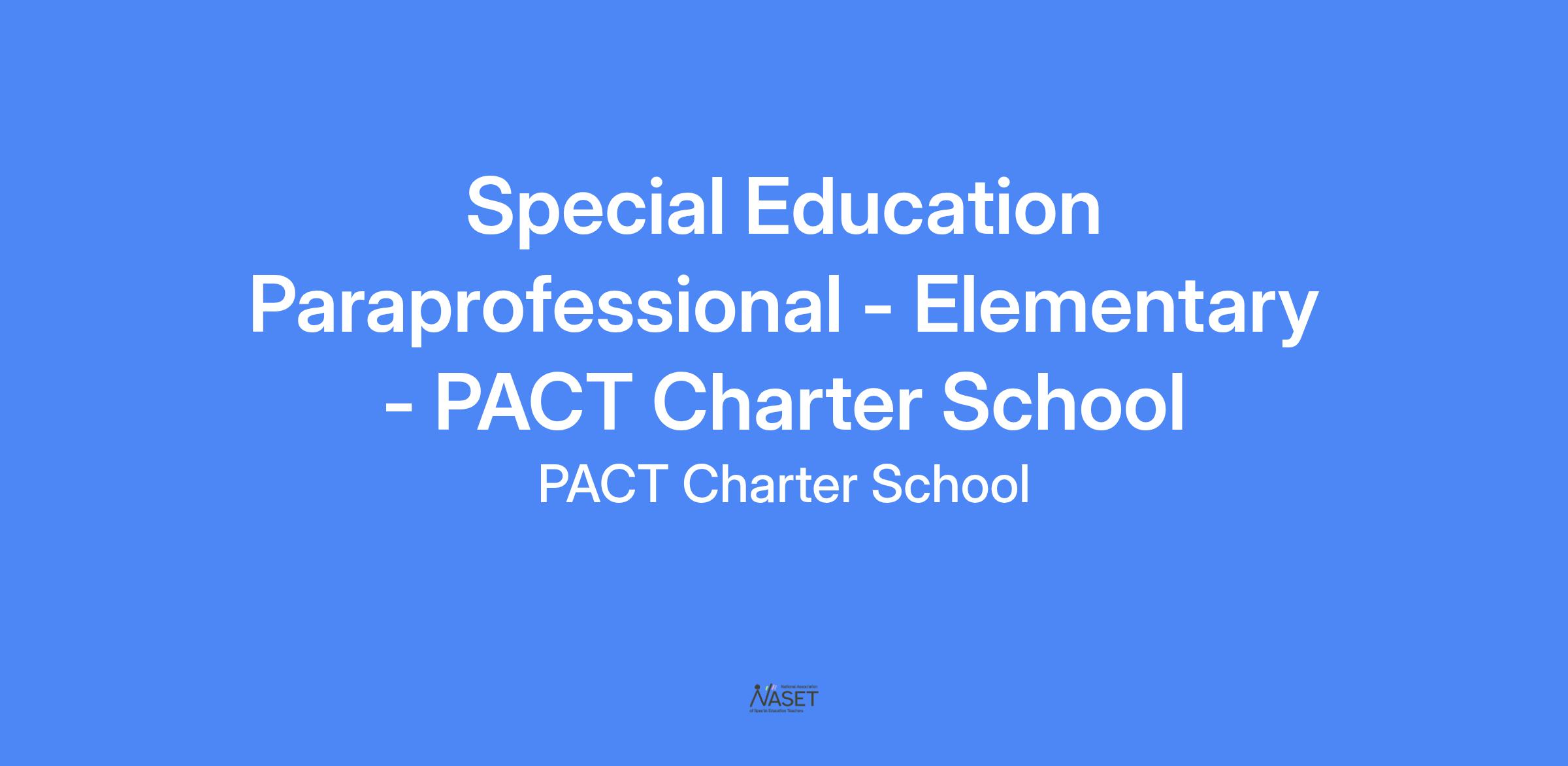 PACT Charter School (Pursuing Academics and Character Together) has an opening for the 2025-2026 school year for an Elementary Special Education Paraprofessional to assist teachers with individual student needs served by special education within the general education setting.