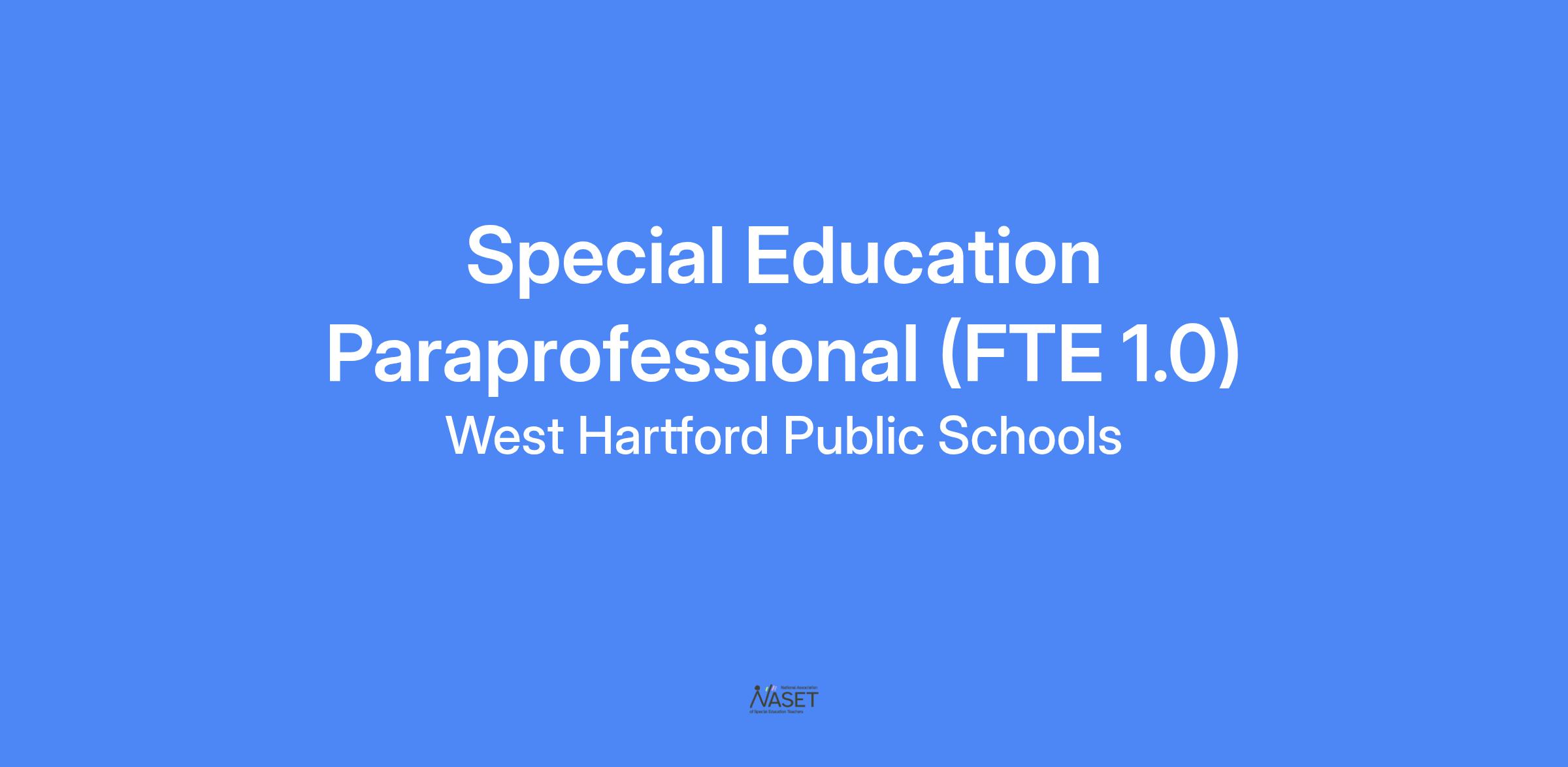 West Hartford Public Schools seeks a candidate with a proactive and positive attitude to fill a position for a full-time special education paraprofessional at King Philip Middle School. Candidates must be patient, respectful, and flexible with effective interpersonal skills. This is a 10-month position with full benefits working in the special needs program to support students with behavioral, social, and emotional concerns.