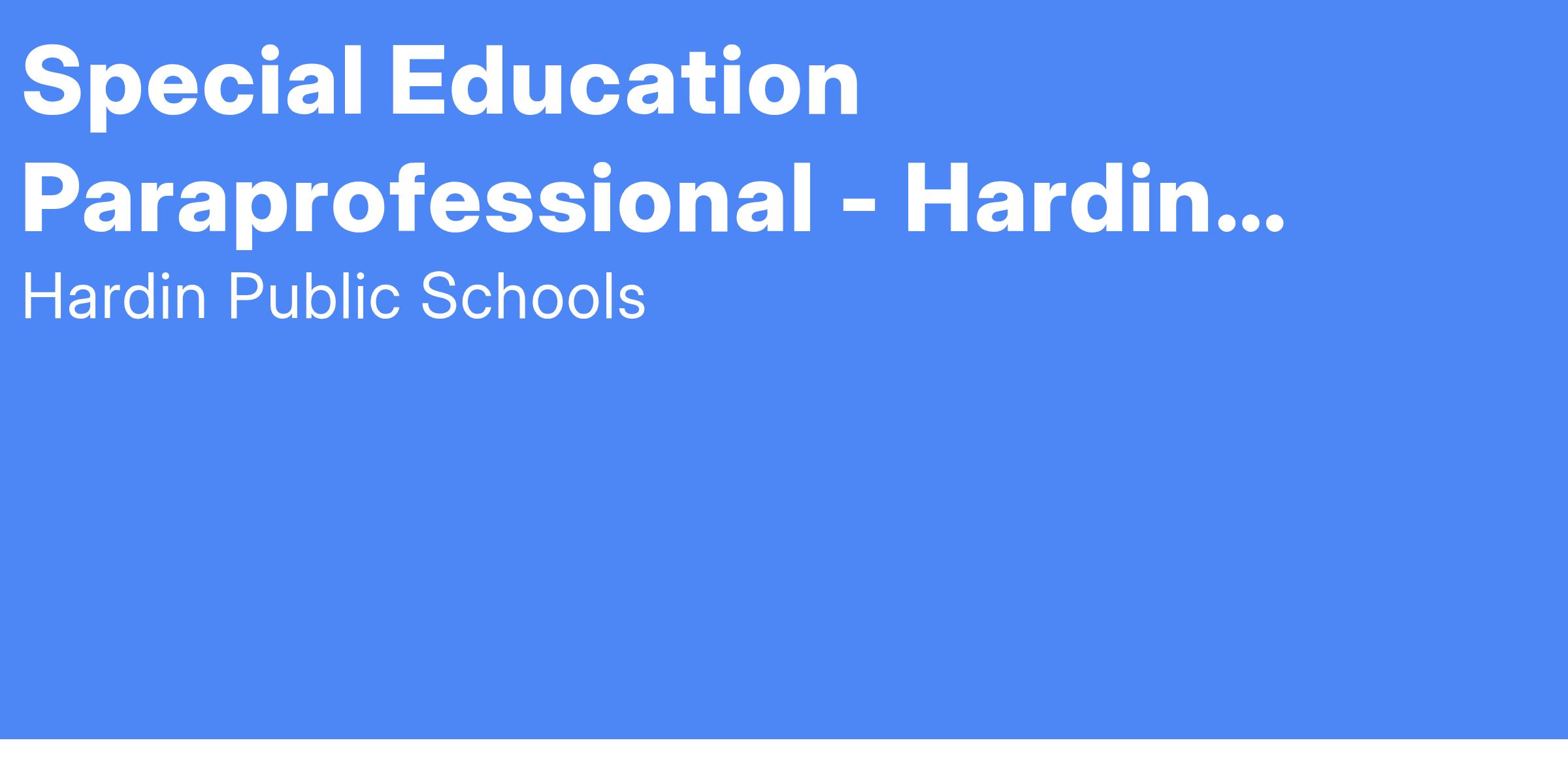 SPECIAL EDUCATION PARAPROFESSIONAL – Hardin Middle School