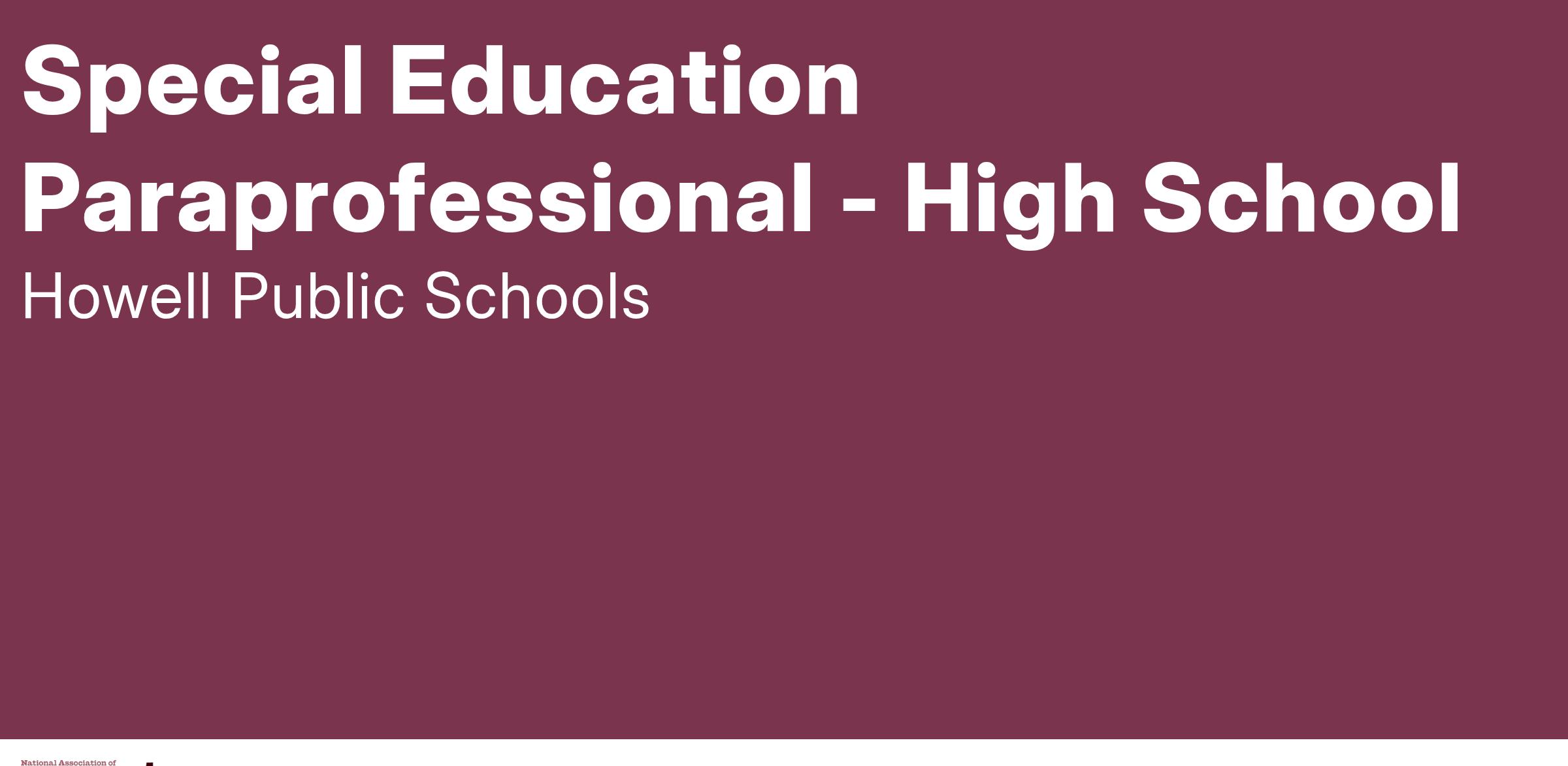 Howell Public Schools is an Equal Opportunity Employer and does not discriminate in its educational policies or practices on the basis of religion, race, color, sex, national origin or handicap of any individual. The employee shall remain free of any alcohol or non-prescribed controlled substance in the workplace throughout his/her employment in the District. For more information on this posting or employment opportunities with Howell Public Schools, call (517) 568-6241 or visit www.howellschools.com.