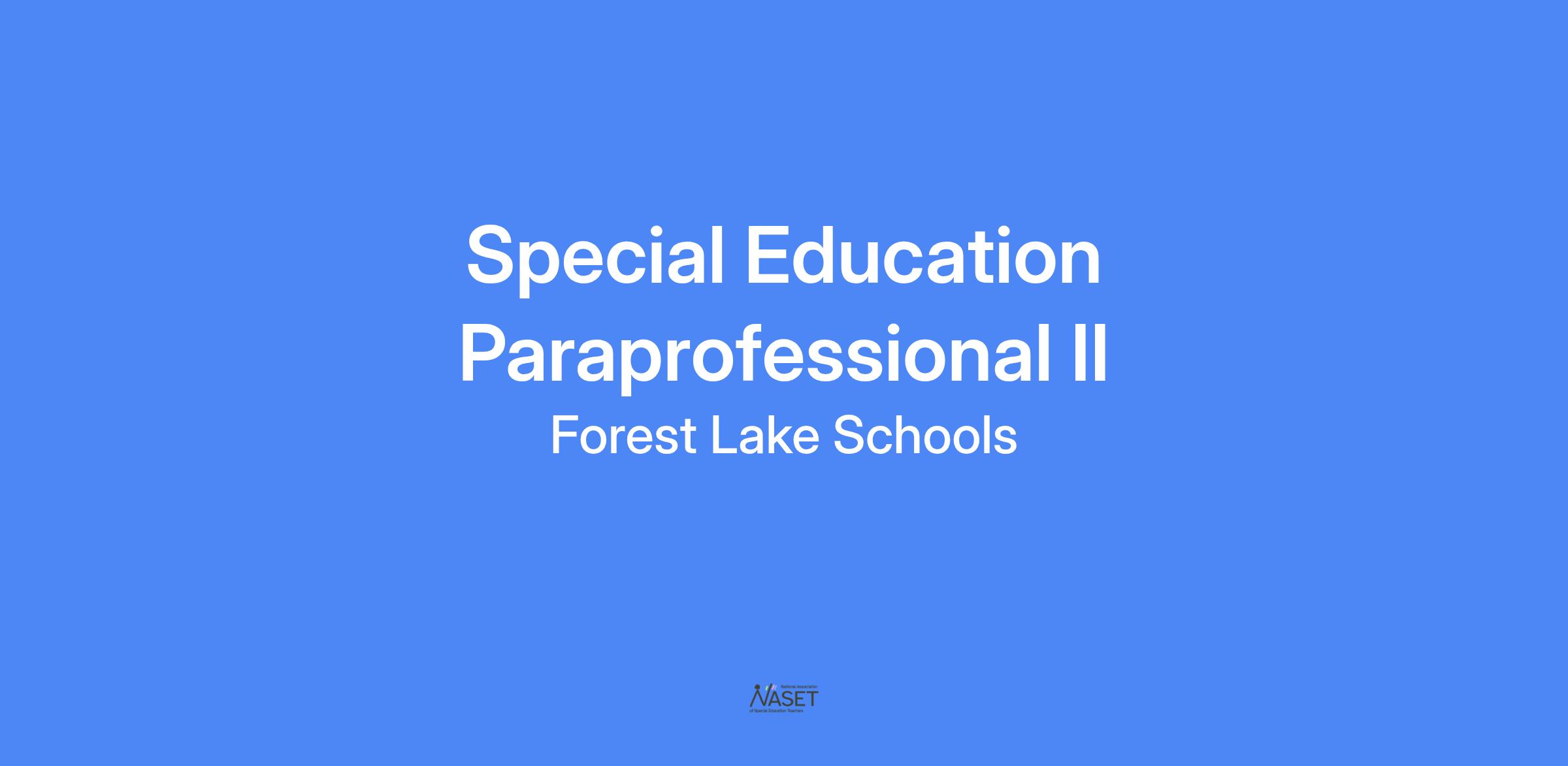 Forest Lake Area School District is currently seeking applicants for the position of Early Childhood Special Education Paraprofessional II to start ASAP.