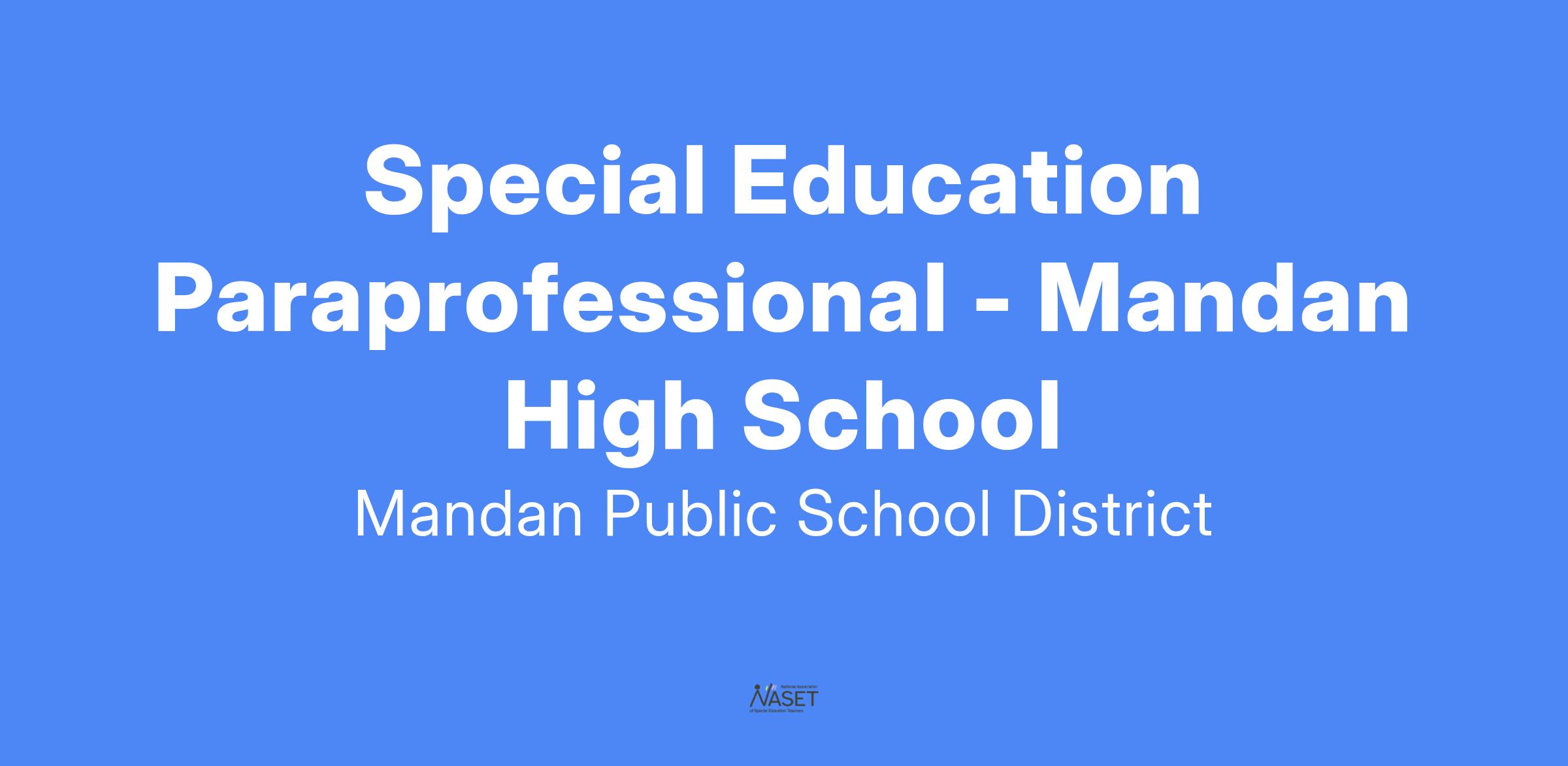 Mandan Public Schools is currently seeking to hire a Special Education Paraprofessional for the 2025-2026 school year. This position is full time and follows the school calendar. Full benefit package is included for employees working 30 or more hours/week.