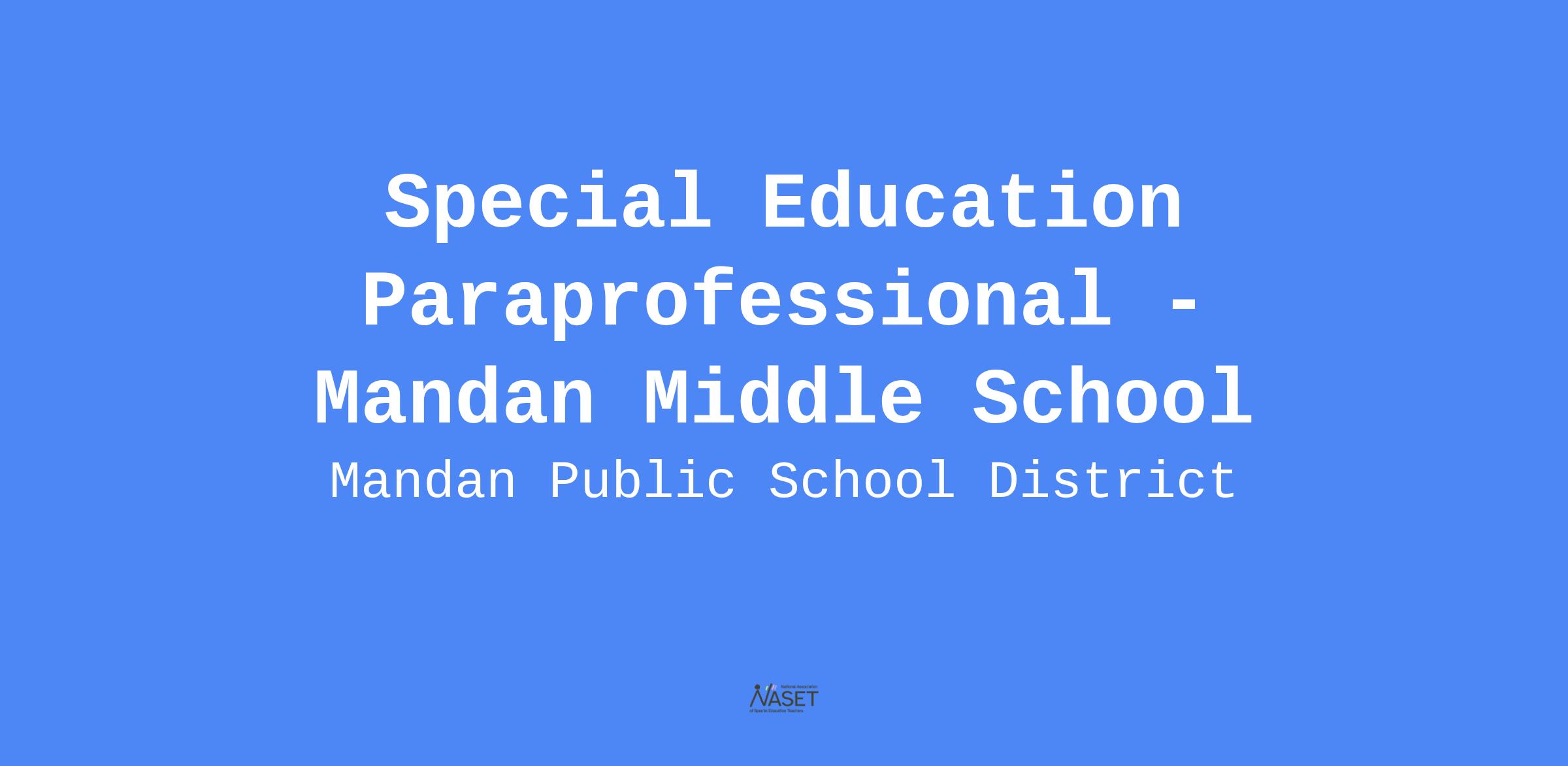 Mandan Public Schools is currently seeking to hire a Special Education Paraprofessional for the 2025-2026 school year. This position is full time and follows the school calendar. Full benefit package is included for employees working 30 or more hours/week.