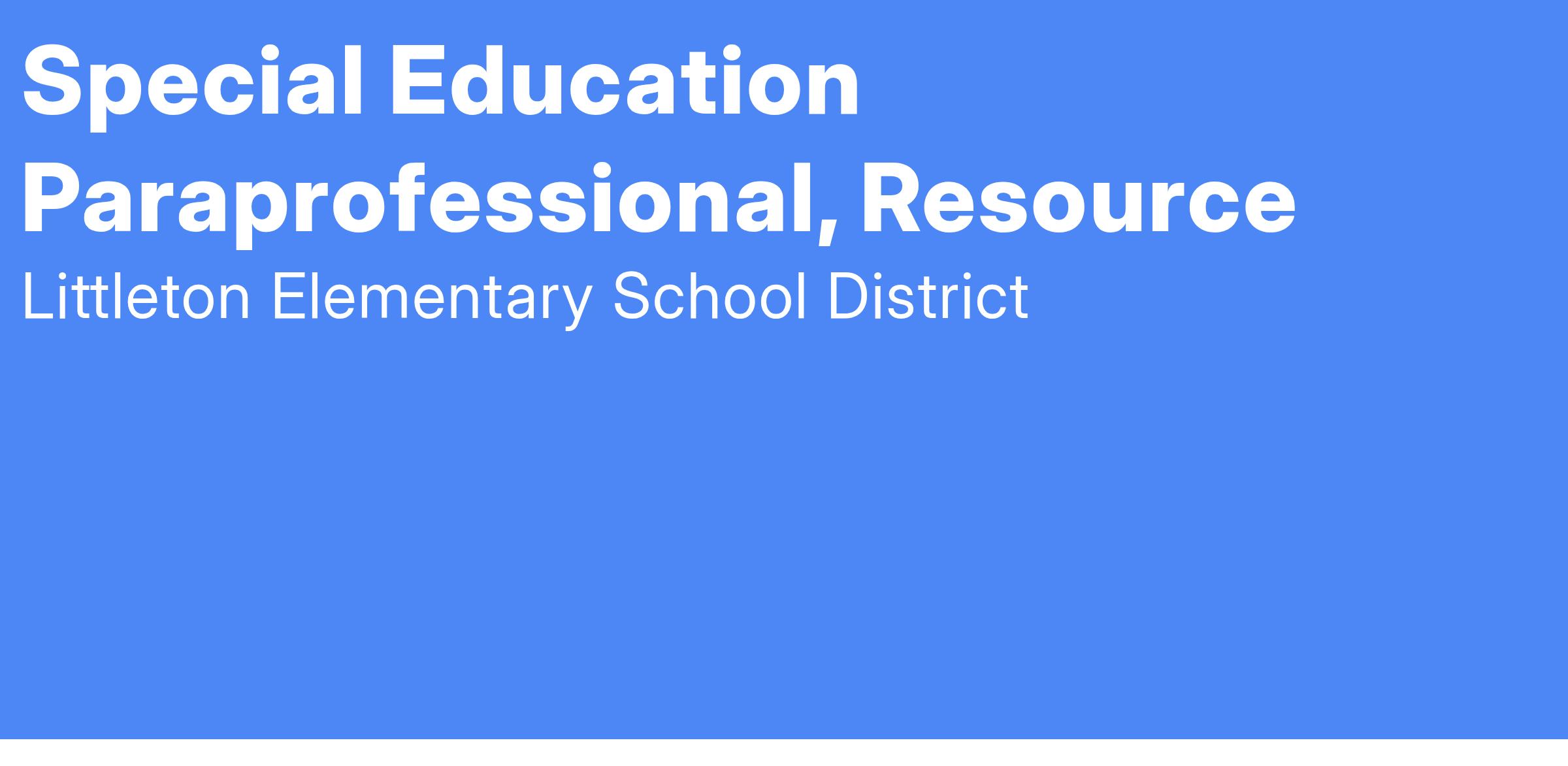Special Education Paraprofessional, Resource