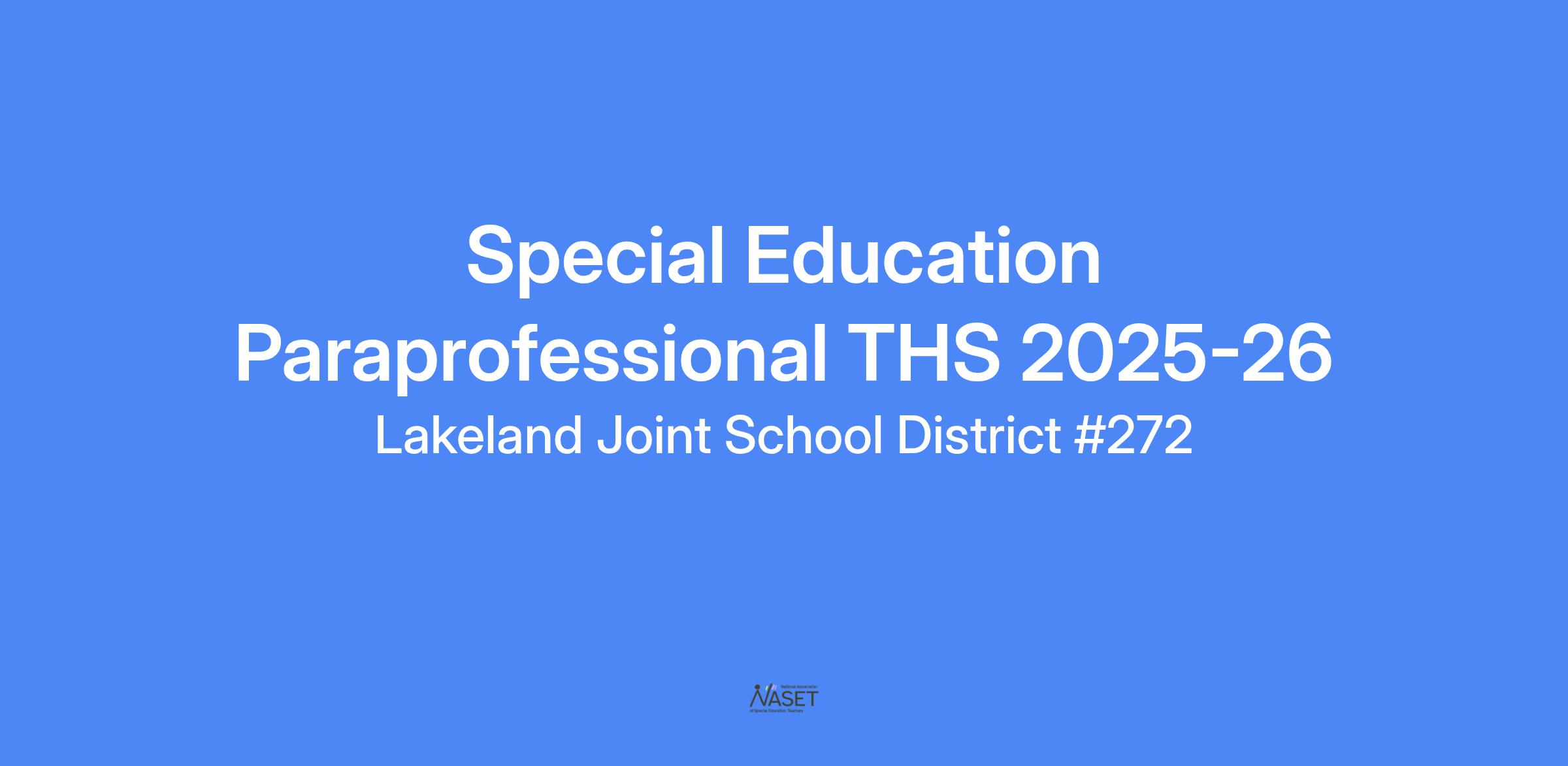 Lakeland Joint School District is seeking applications for a Special Education Paraprofessional at Timberlake High School for the 2025–2026 school year.