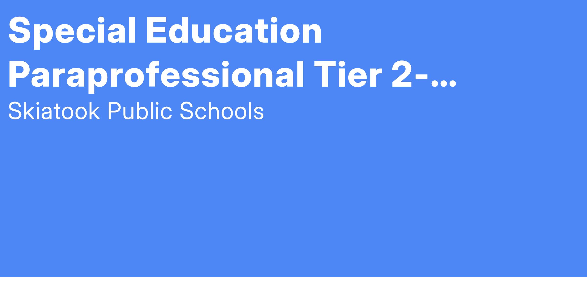 Skiatook Public Schools is accepting applications for a Special Education Paraprofessional for Skiatook High School for the 2025-26 school year.