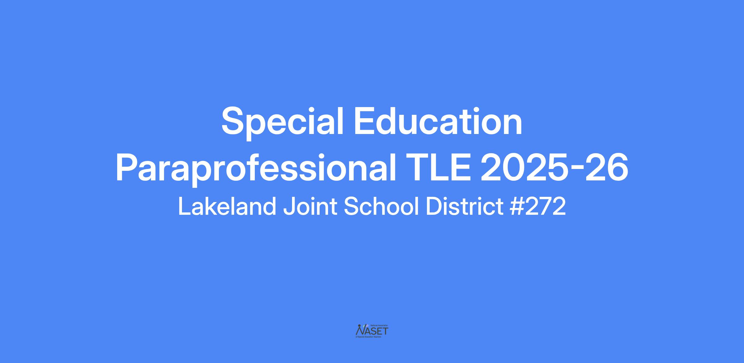 Lakeland Joint School District is seeking applications for a Special Education Paraprofessional at Twin Lakes Elementary School for the 2025–2026 school year.