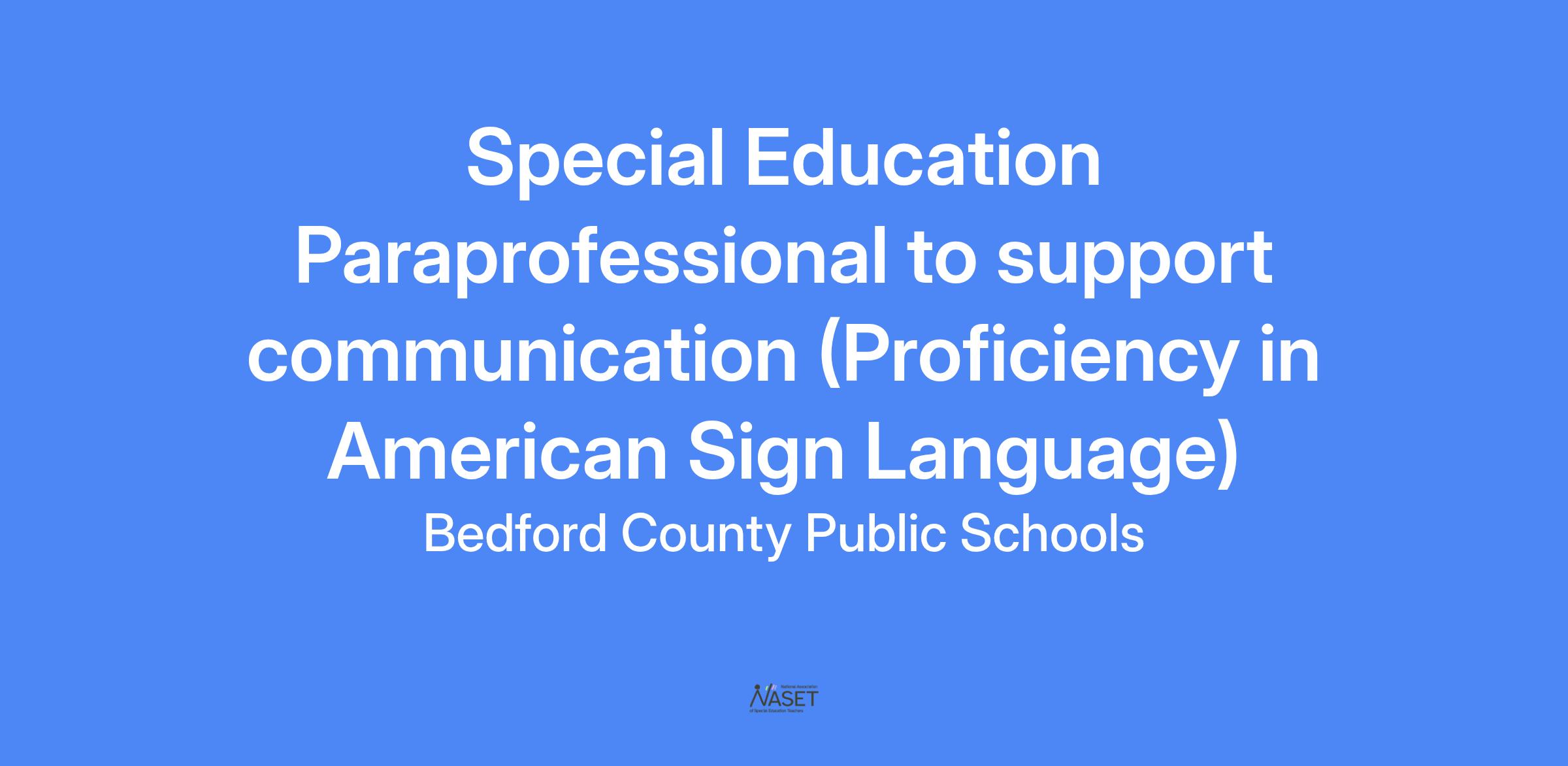 Job Title: Paraprofessional to support communication (Proficiency in American Sign Language)- Special Education