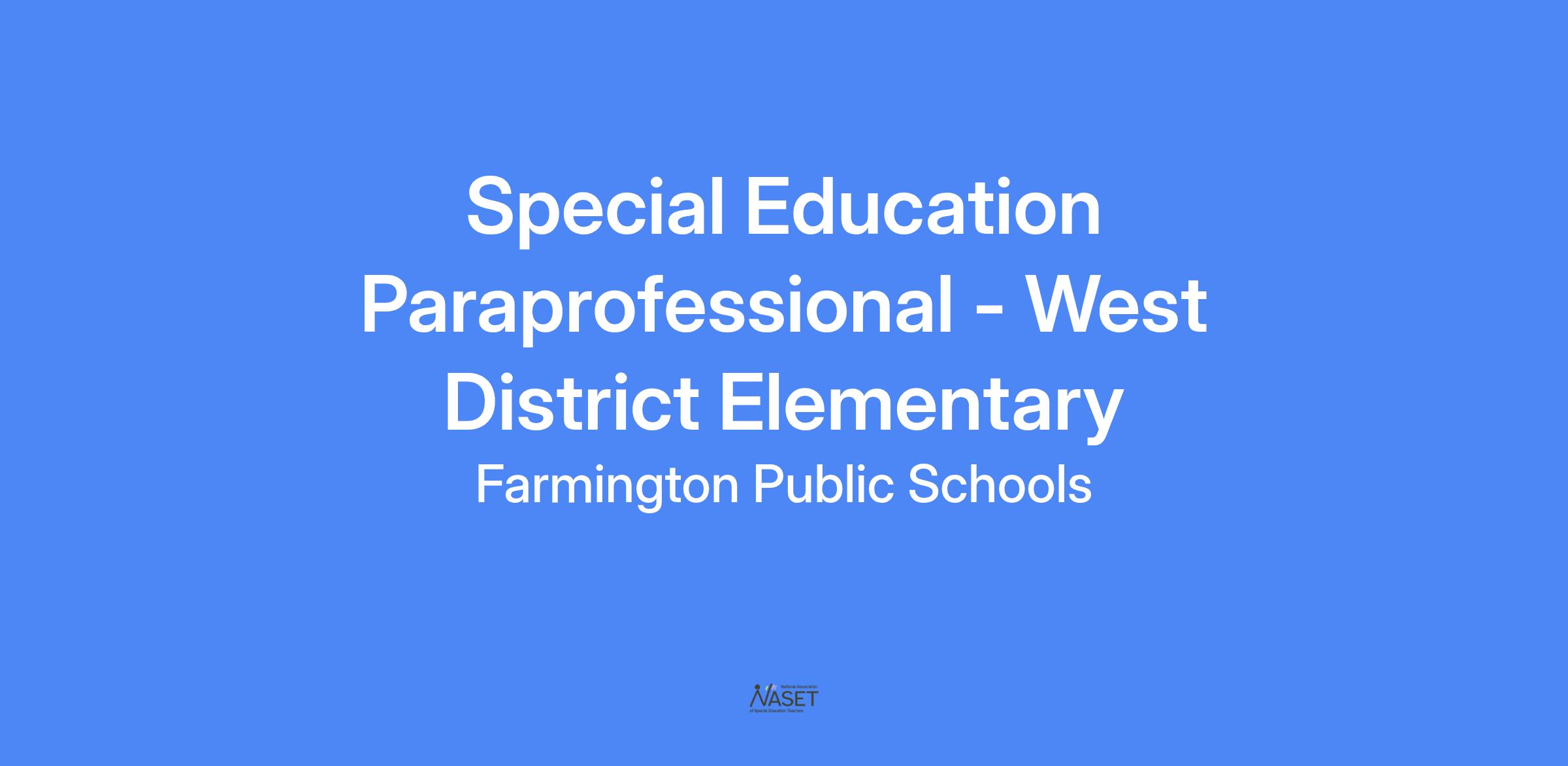 West District Elementary is seeking a Special Service Paraprofessional.