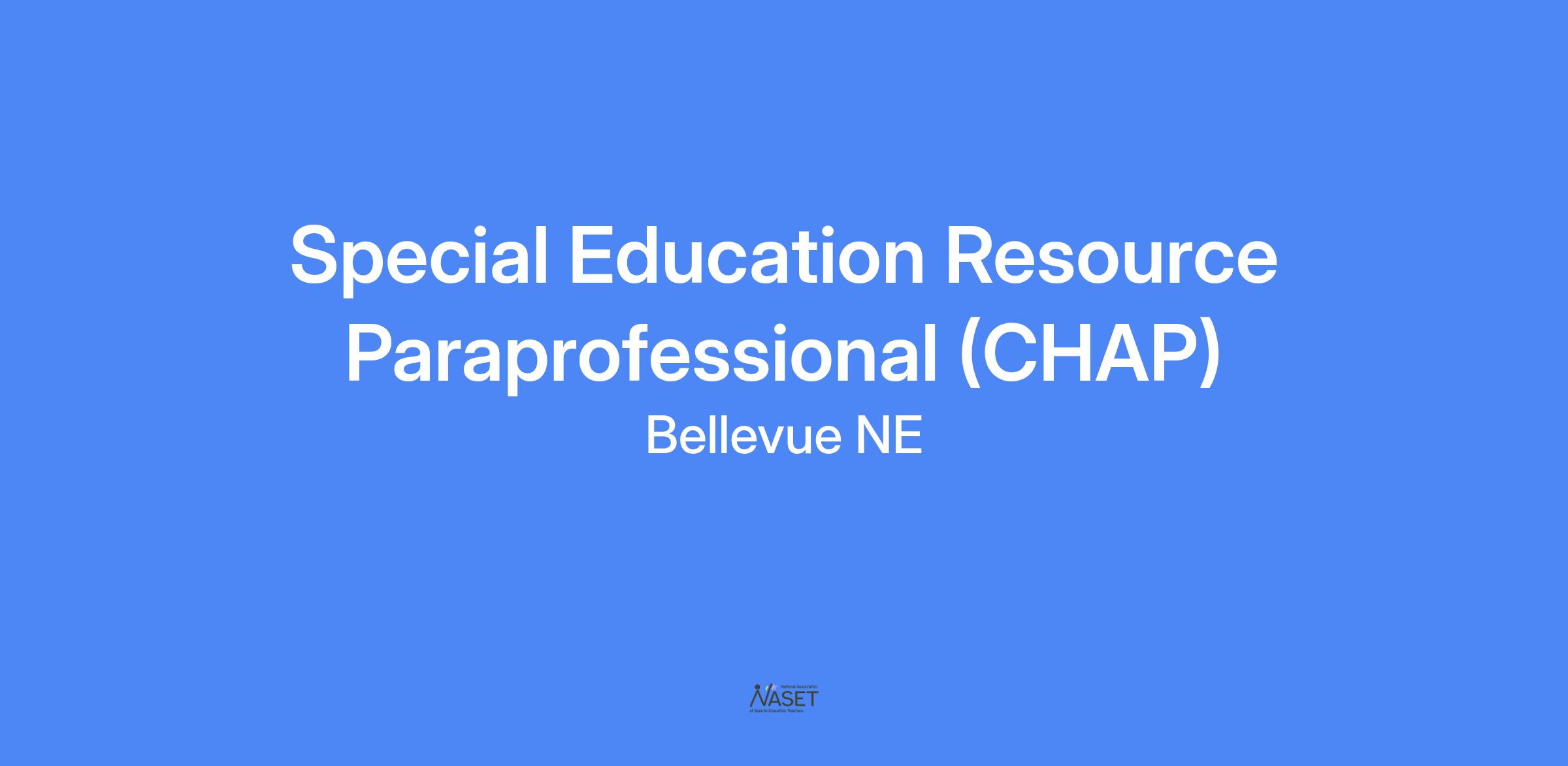 Applications are being accepted for a 6 hour 45 minute per day Special Education Resource Paraprofessional position at the CHAP Center. The special education paraprofessional works under the direction and supervision of a teacher or other designated member of the school staff. The special education paraprofessional helps special education students acquire skills and competencies taught by the classroom teacher. Duties include supervising and working with students both one on one and in small groups when needed assisting the teacher in the classroom. Duties also include lifting, giving physical assistance, assisting in the lunchroom, and with toileting, transportation, and recreational activities in all areas of the building. Required qualifications are that the applicant not pose a direct threat to the health or safety of himself/herself or others with or without reasonable accommodations, and must be capable of regularly attending to the duties of the position assigned and for the duration of the assignment. This position is subject to a veterans preference. Duty hours are typically Monday through Friday, from 7:45 a.m. to 3:00 p.m. If this position is of interest to you, but the hours don't quite work with your schedule, please apply and feel free to discuss the idea of flexible hours if you are selected for an interview.