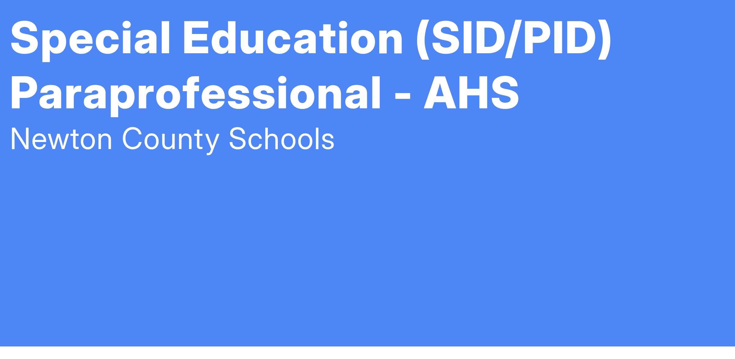 Special Education (SID/PID) Paraprofessional - AHS