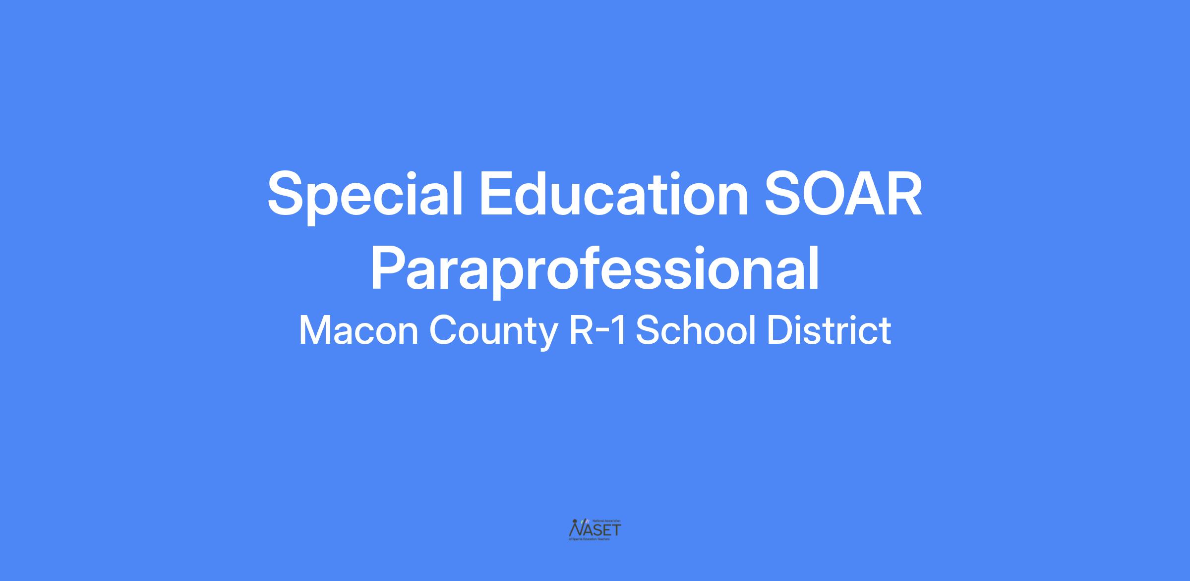 The Macon R-1 School District is seeking a Special Education SOAR Paraprofessional for the 2025-2026 school year.
