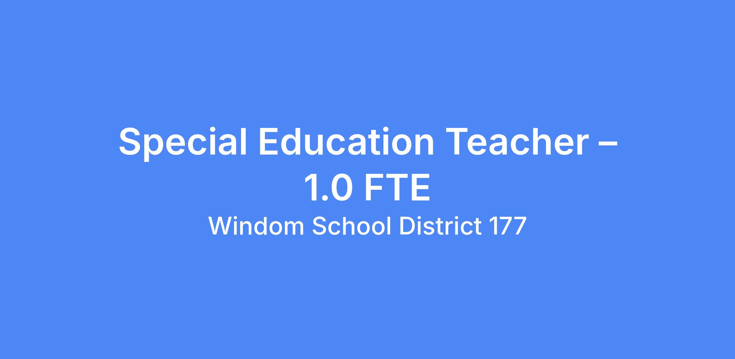 Special Education Teacher � 1.0 FTE