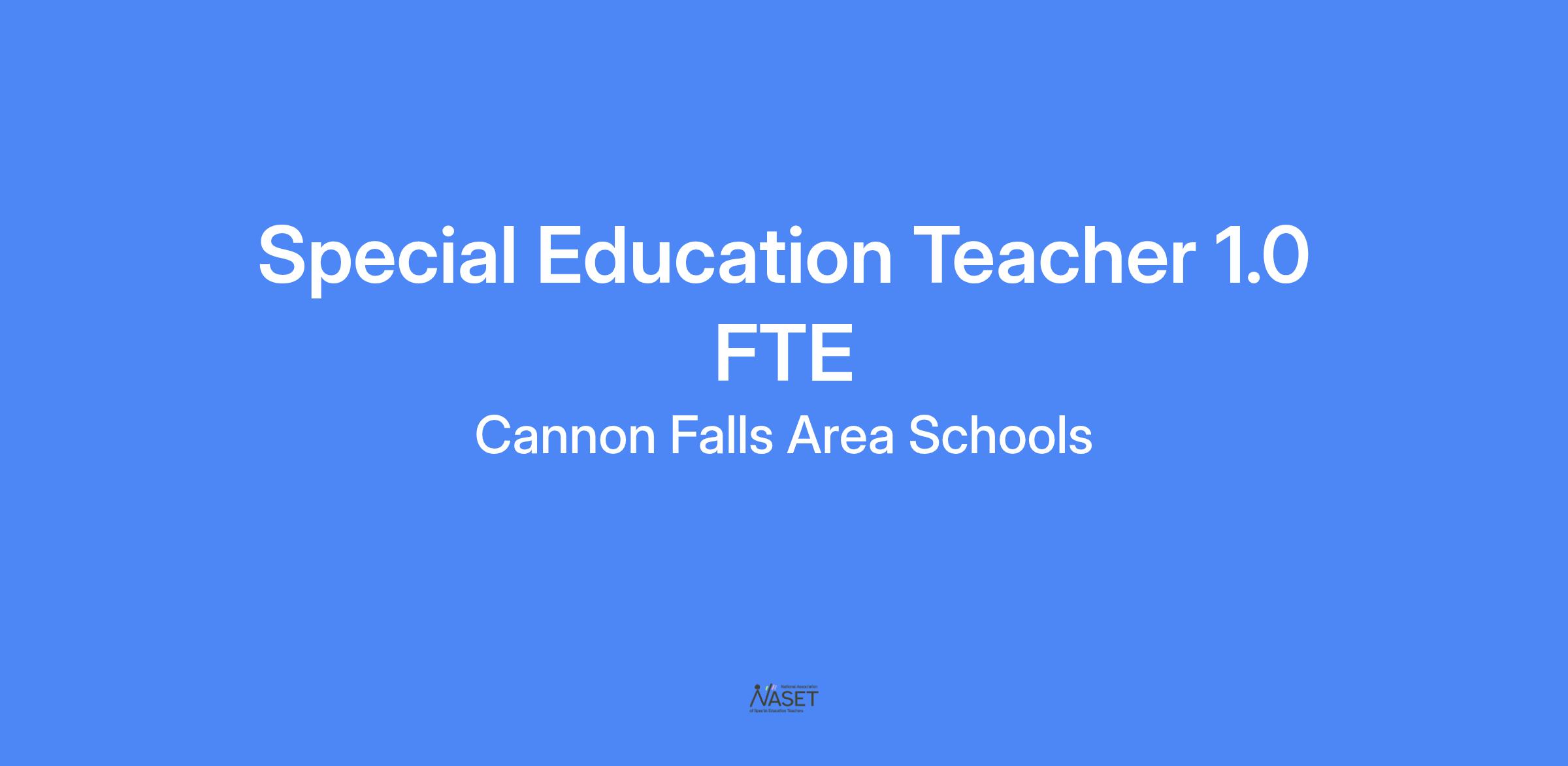 Cannon Falls Elementary has an opening for a Special Education Teacher 1.0 FTE starting as soon as possible. Elementary Special Education, EBD or ABS license preferred but will consider all special education licensure and out-of-field permission as applicable.