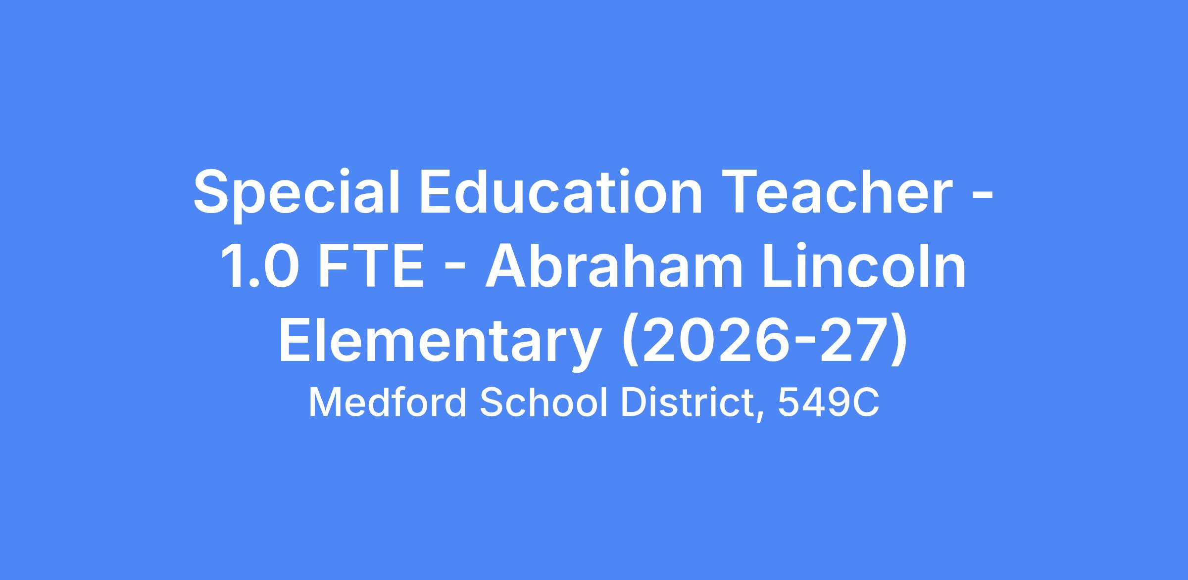 Medford School District 549C is an equal opportunity employer and provides qualifying veterans and disabled veterans with preference in employment in accordance with ORS 408.225, 408.230, and 408.235.
