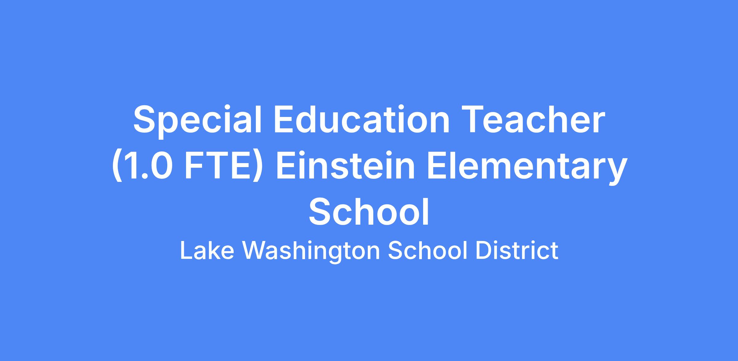 Einstein Elementary School is looking for qualified Special Education Teacher candidates for a 1.0 FTE position in a Resource Room setting. Building administrators will contact you if you are selected for an interview.