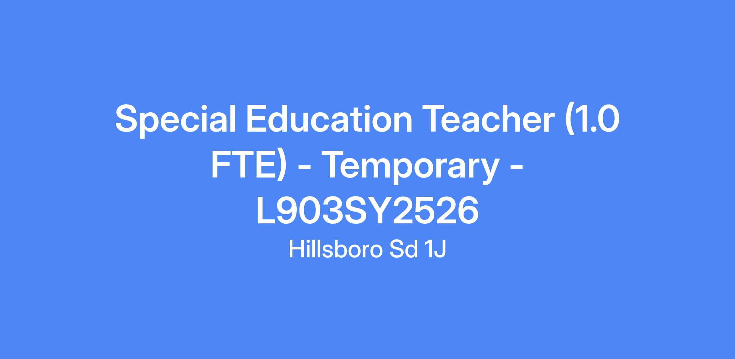 Special Education Teacher | 1.0 FTE | Date Needed: 1/19/2026 | 10 Month Calendar | Temporary