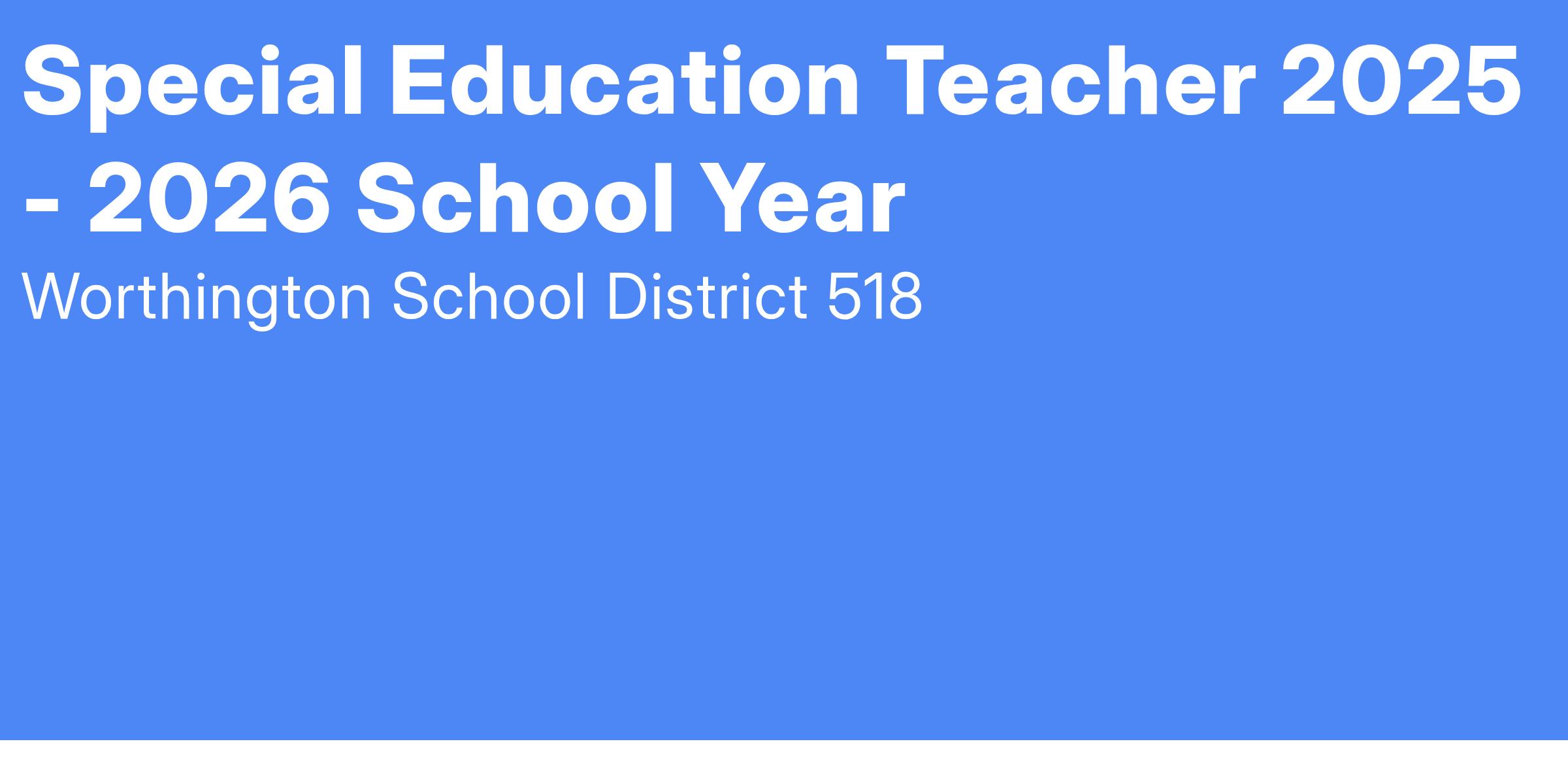 Special Education Teacher 2025 - 2026 School Year