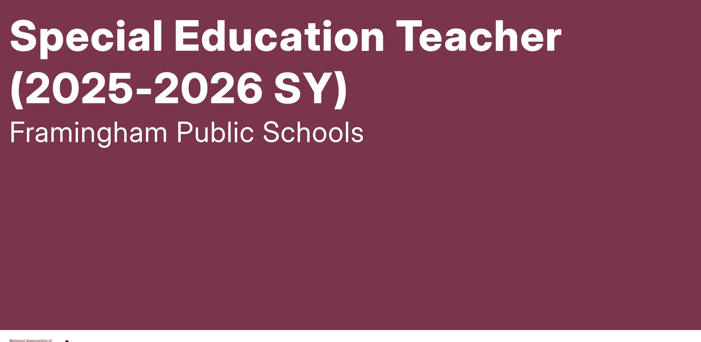 Framingham Public Schools is dedicated to the goal of building a culturally diverse and pluralistic faculty committed to teaching and working in a multicultural environment and strongly encourages applications from persons with disabilities and who identify as members of historically underrepresented groups.