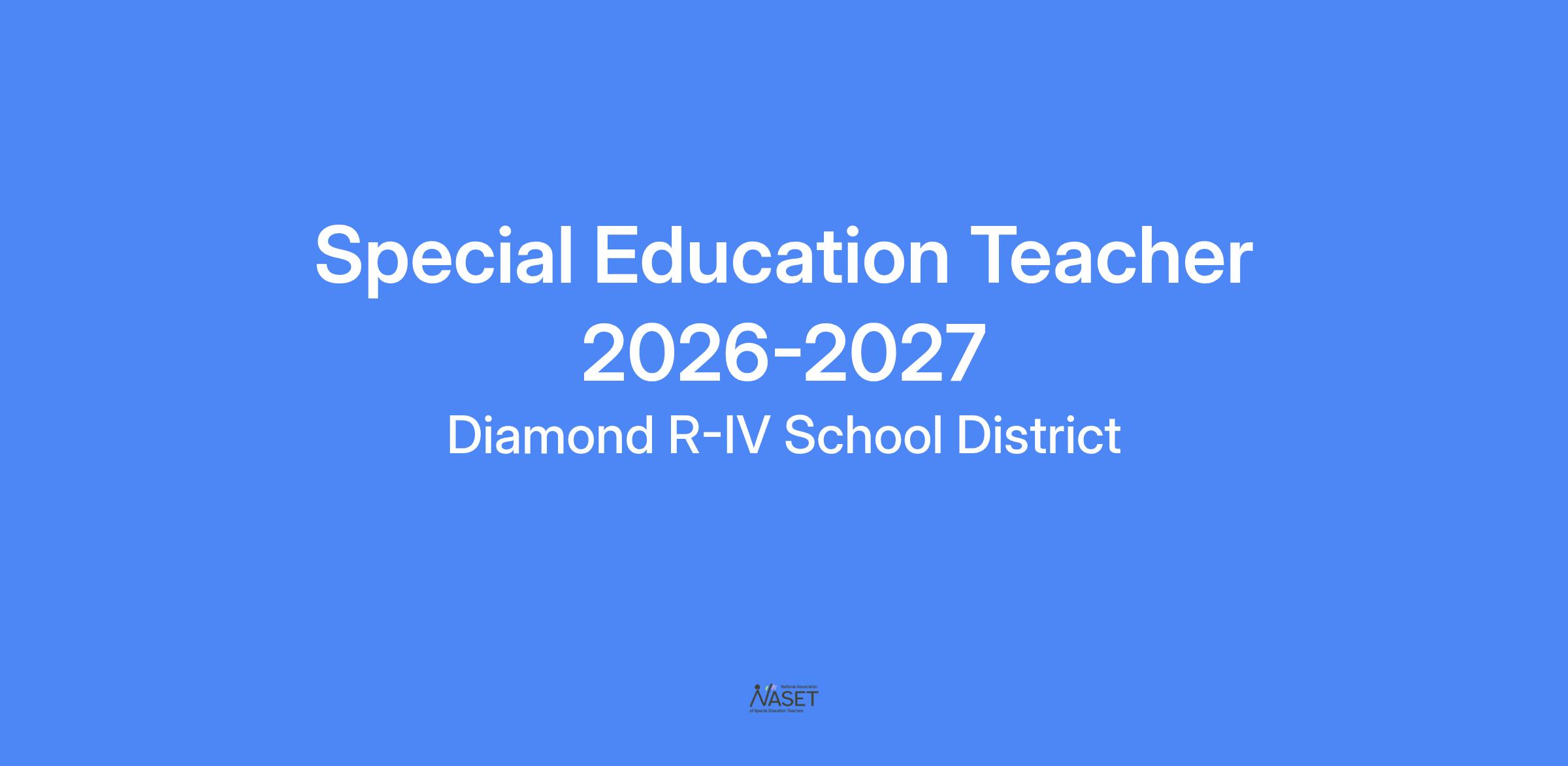 Diamond R-IV School District is seeking a Special Education Teacher for the 2026-2027 school year. This position will be open until filled.