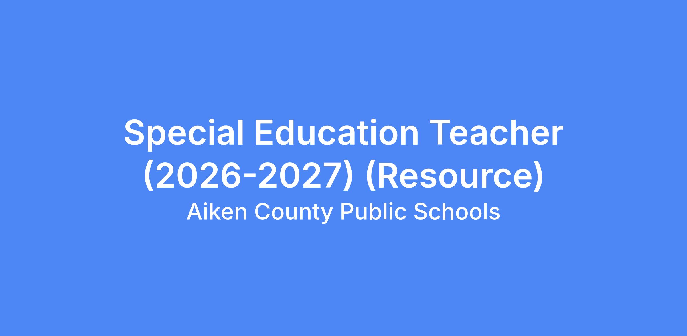 Special Education Teacher (2026-2027) (Resource)