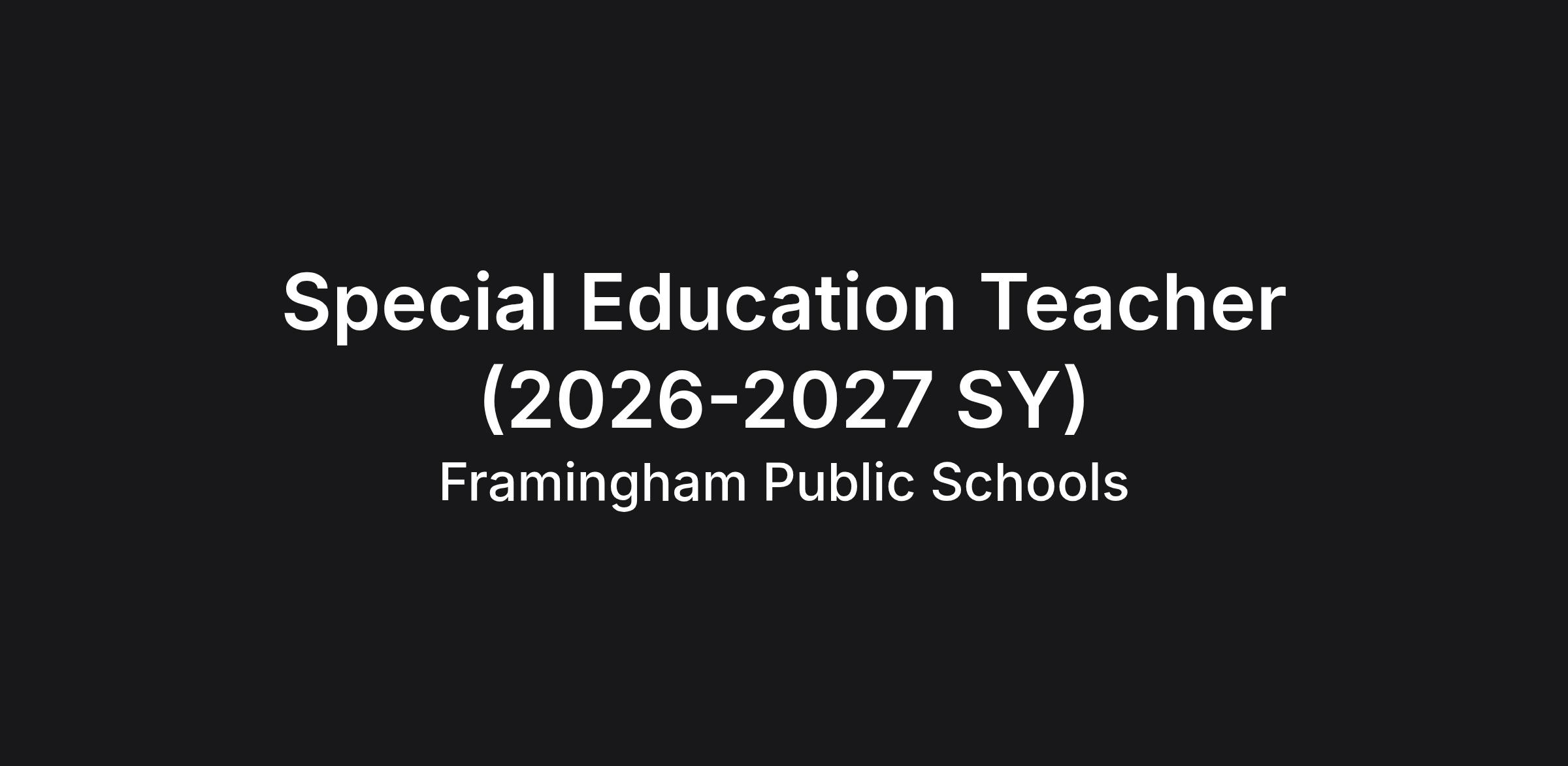 The Special Education Teacher for the Emotional Disability (ED) Program at the Therapeutic Learning Center (TLC) provides critical instructional support through a partially sub-separate therapeutic service model, leading a specialized classroom environment with a low staff-to-student ratio to ensure students achieve academic and social-emotional proficiency. In this role, the teacher acts as a lead therapeutic educator, delivering implicit instruction on anger management, conflict resolution, and self-advocacy, while providing research-based interventions for students with emotional and behavioral disorders. This role is essential to Framingham Public Schools’ day-to-day operations and strategic goal of fostering the development of the "whole child" by collaborating with Behavior Specialists and Social Workers to provide comprehensive wrap-around support. This commitment aligns with Framingham Public Schools’ high expectations for achievement, providing equal access to specialized instruction and supporting students as they transition to and excel within the general education environment.