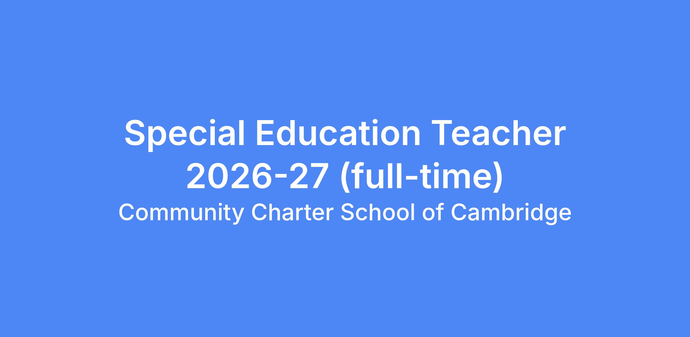 Send a cover letter and resume to Courtney Burns, Director of Student Support, at ELLjob@ccscambridge.org with the subject line “Special Education Teacher 2026-27”. Priority will be given to all applications received within 2 weeks of this posting.