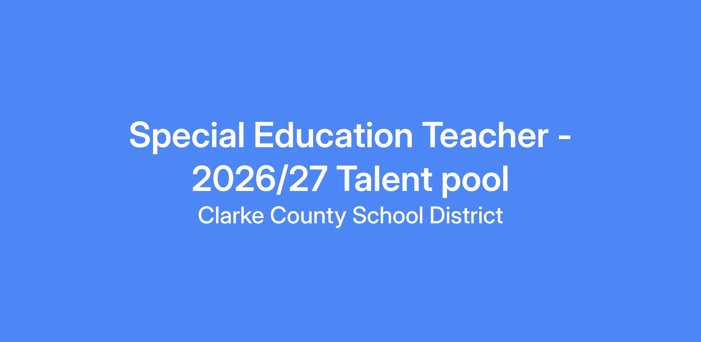 This pool posting is for Interrelated and Adaptive Special Education Teacher candidates at any grade level to be considered for the 2026-2027 School Year opportunities with the Clarke County School District. Please submit your application along with an updated resume to this posting for early consideration.
