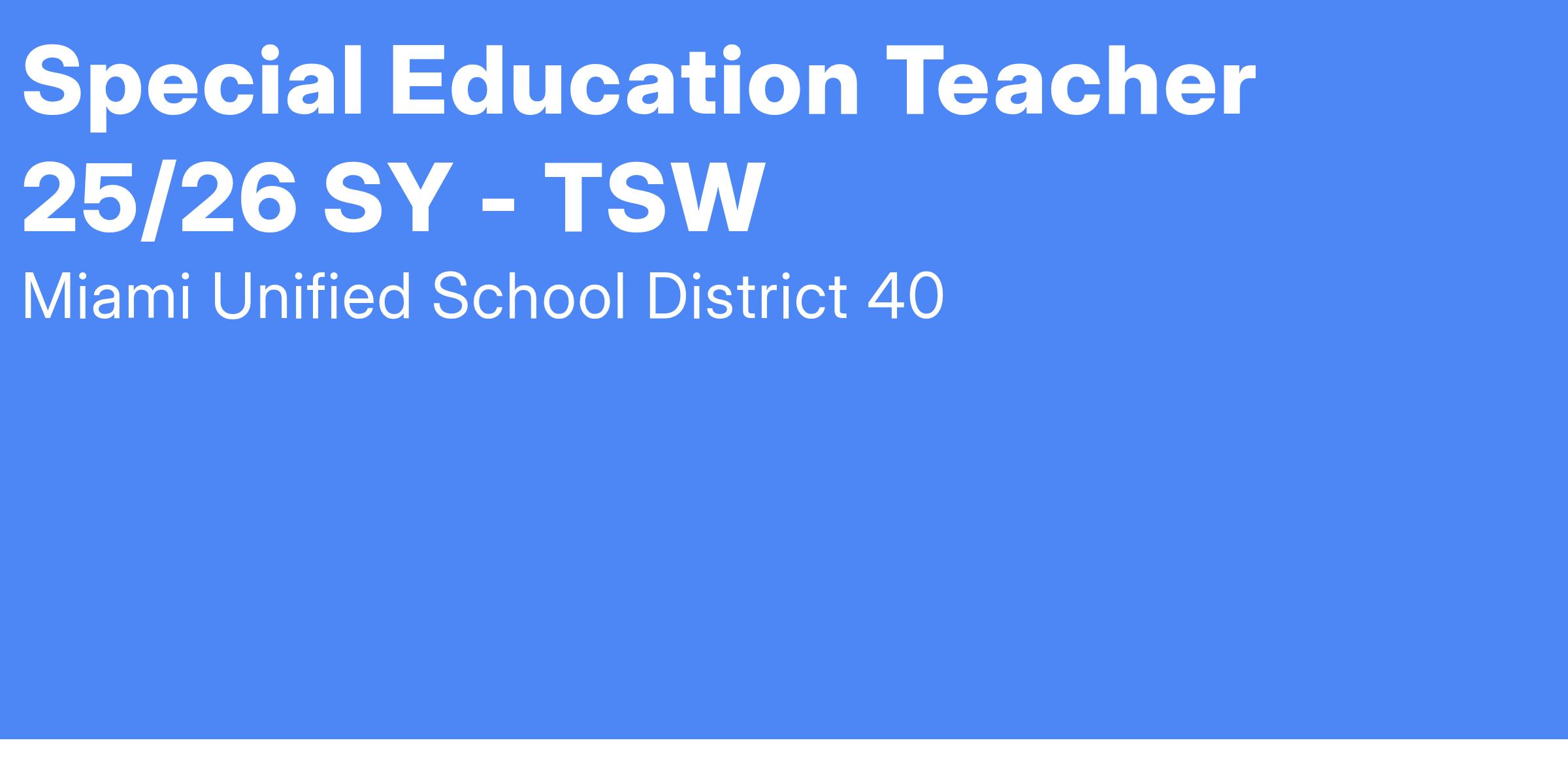 Special Education Teacher 25/26 SY - TSW