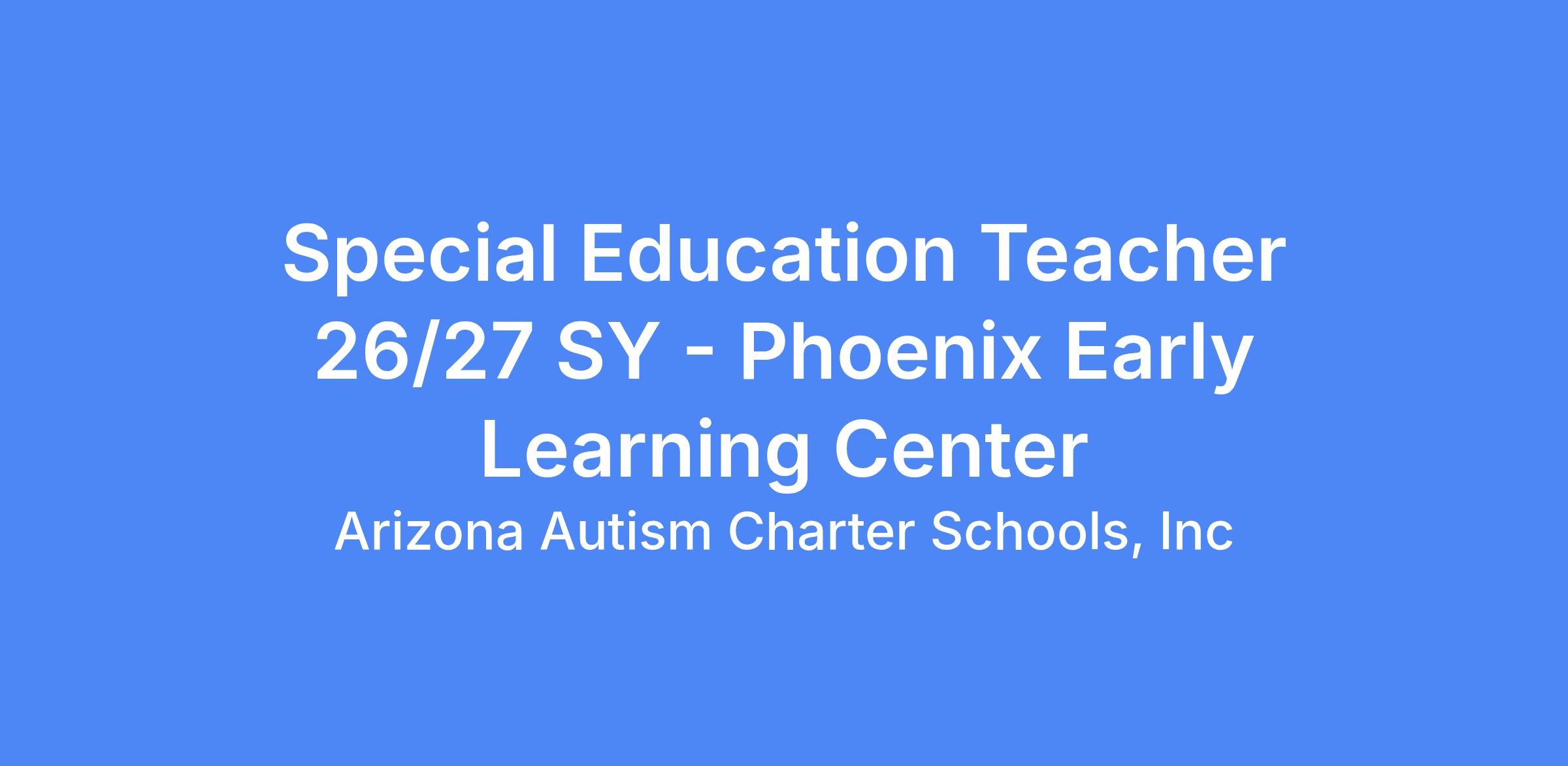 Certified Special Education Teacher 26/27 School Year - Phoenix Early Learning Center (K-3rd grade)