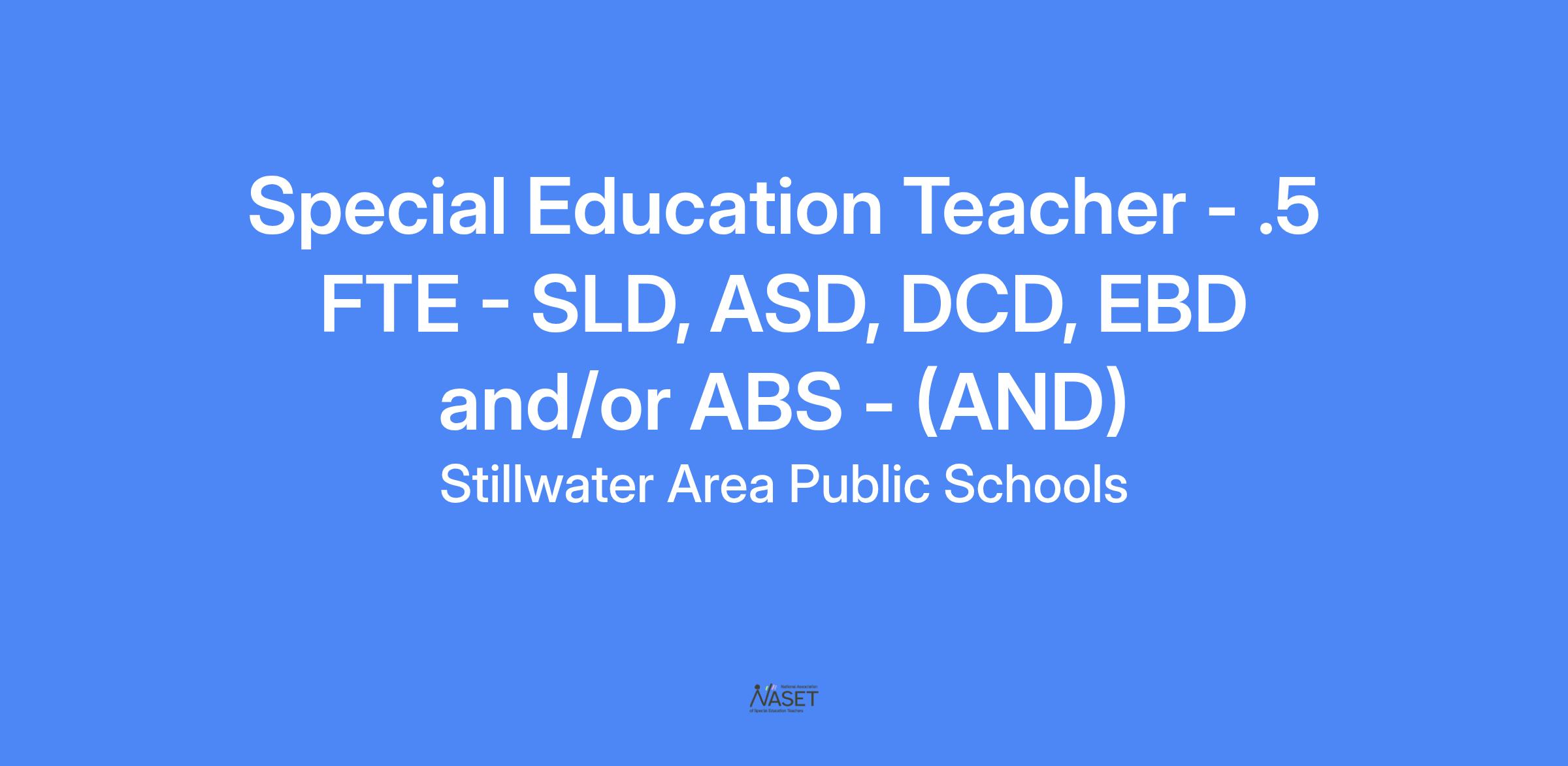 Job Title: Special Education Teacher - .5 FTE - SLD, ASD, EBD and/or ABS Andersen Elementary
