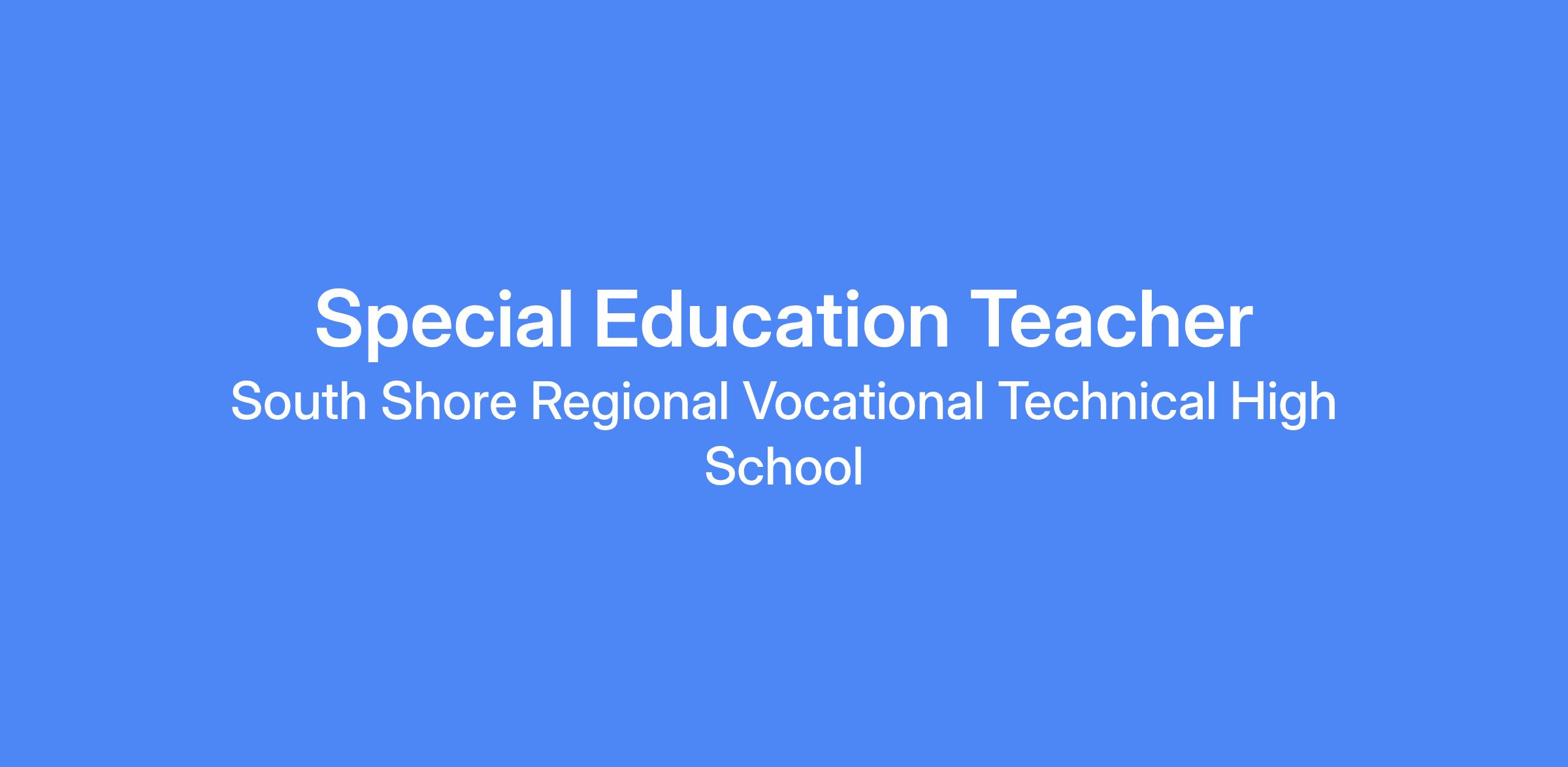 South Shore Technical High School seeks a full time, licensed Special Education teacher (Moderate Disabilities 5-12) for the remainder of the 2025-2026 year.