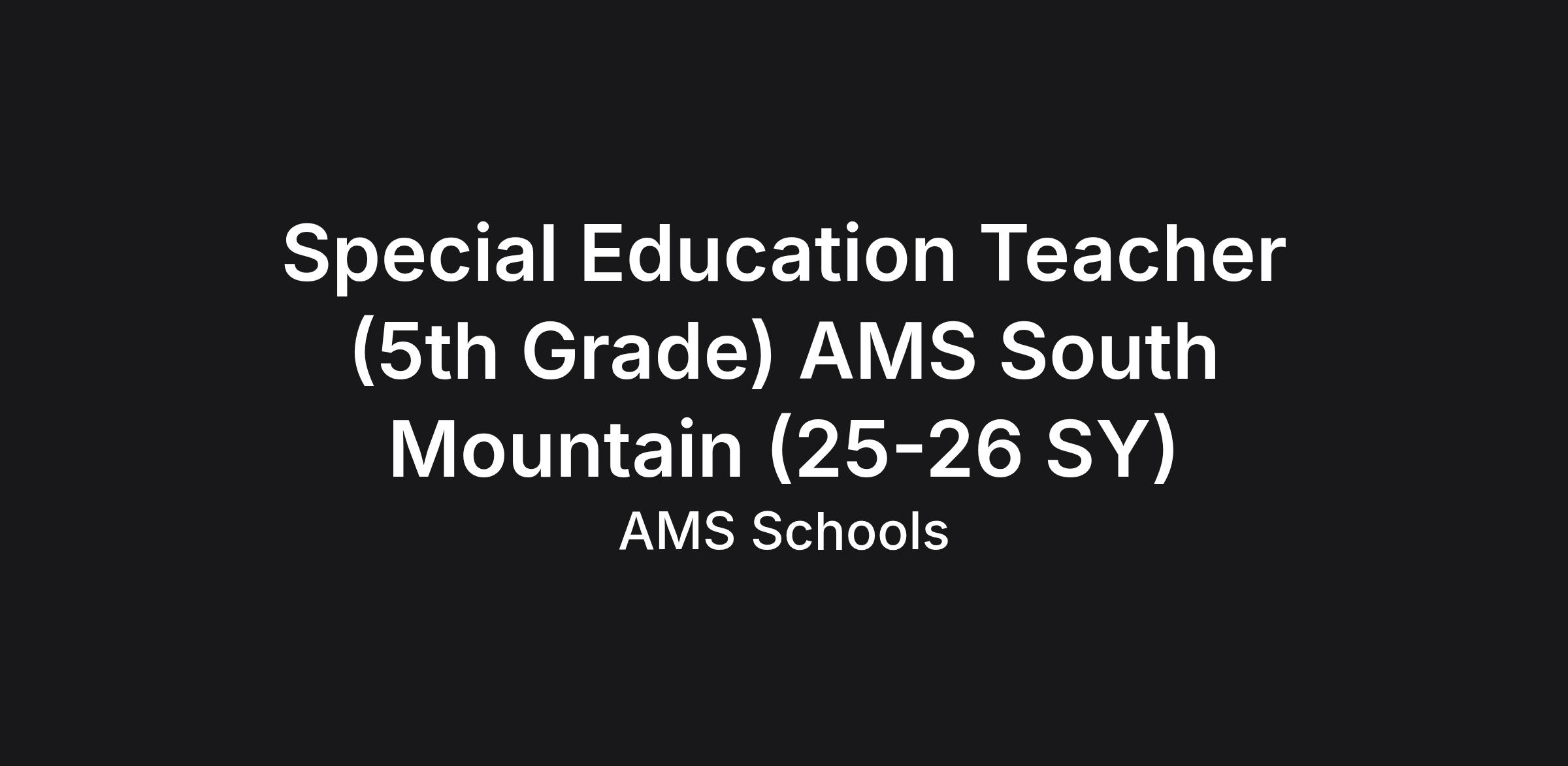 AMS is seeking a dedicated and student-centered Special Education Teacher for 5th Grade to join our team at the AMS South Mountain Campus for the 2025–2026 school year.