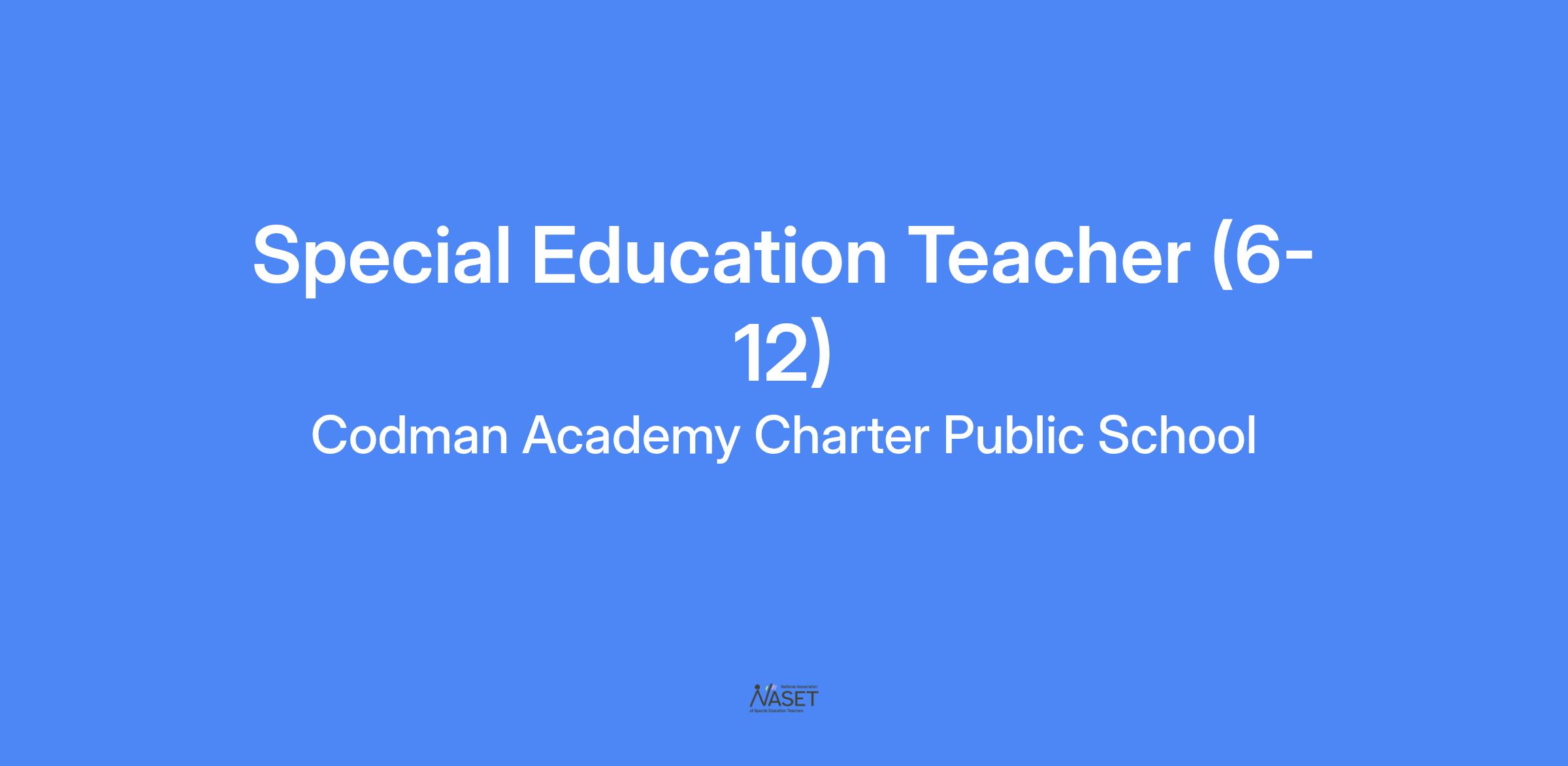 Codman Academy Charter Public School seeks a dedicated Special Education Teacher (6-12) to provide individualized, high-quality instruction and support to students with diverse learning needs. The ideal candidate will be responsible for implementing inclusive and specialized instruction, developing and managing Individualized Education Plans (IEPs), and collaborating with general education teachers to ensure that all students receive equitable access to rigorous, engaging learning experiences. This role requires an SEI (Sheltered English Immersion) endorsement and a strong commitment to serving students with disabilities in an inclusive or resource setting.