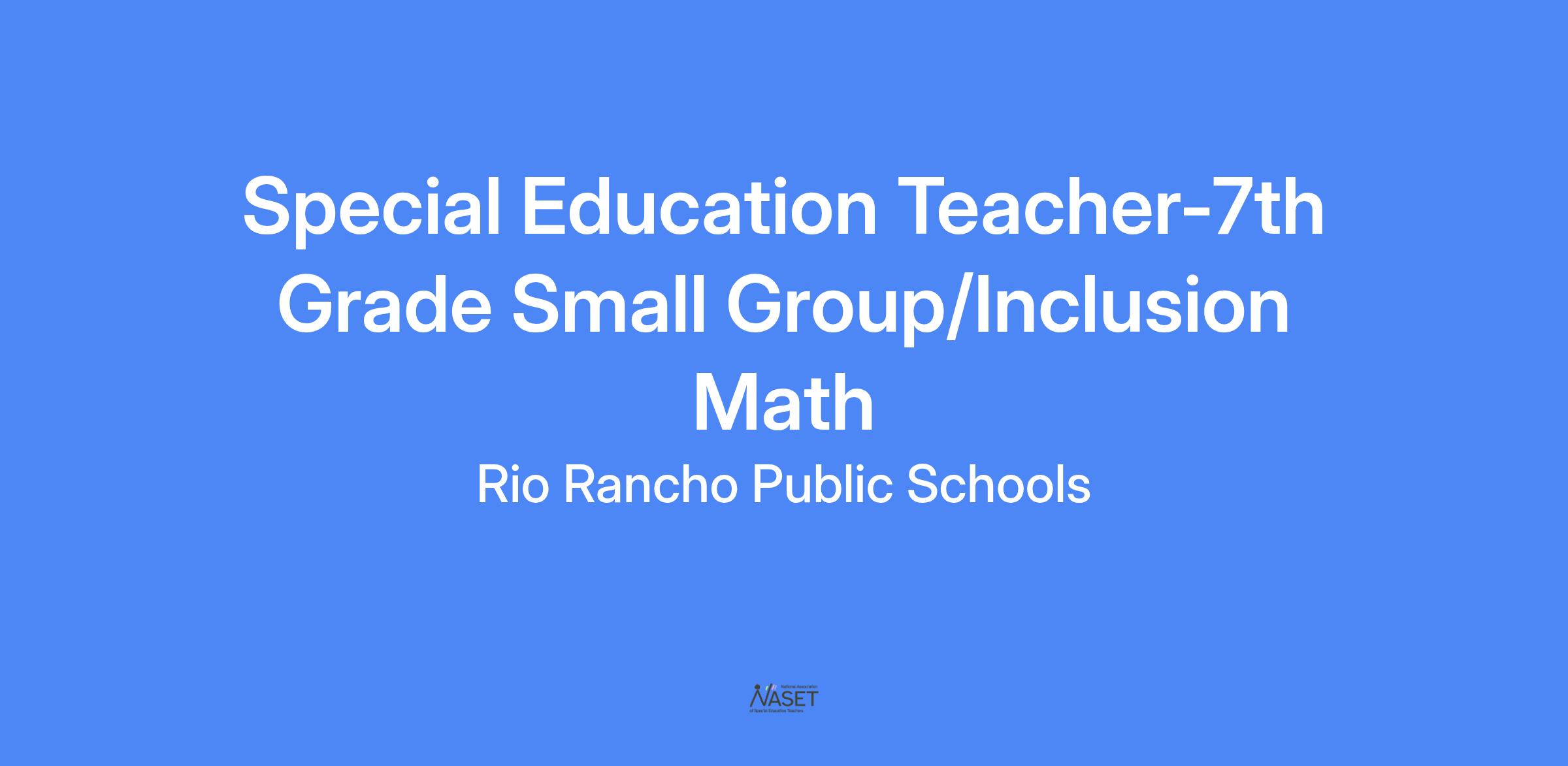 Special Education Teacher-7th Grade Small Group/Inclusion Math