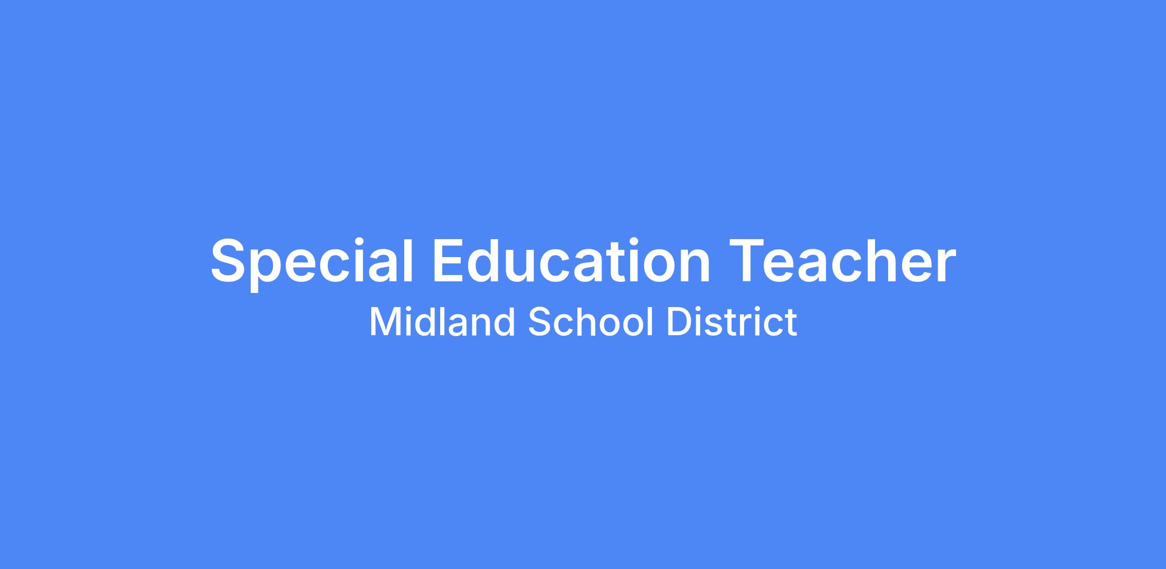 The Midland School District is accepting applications for future openings for a Special Education Teacher. The primary role of the Special Education Teacher is to develop and provide specialized instruction, assessments, and program planning for students with disabilities that fall under the Individuals with Disabilities Education Act.