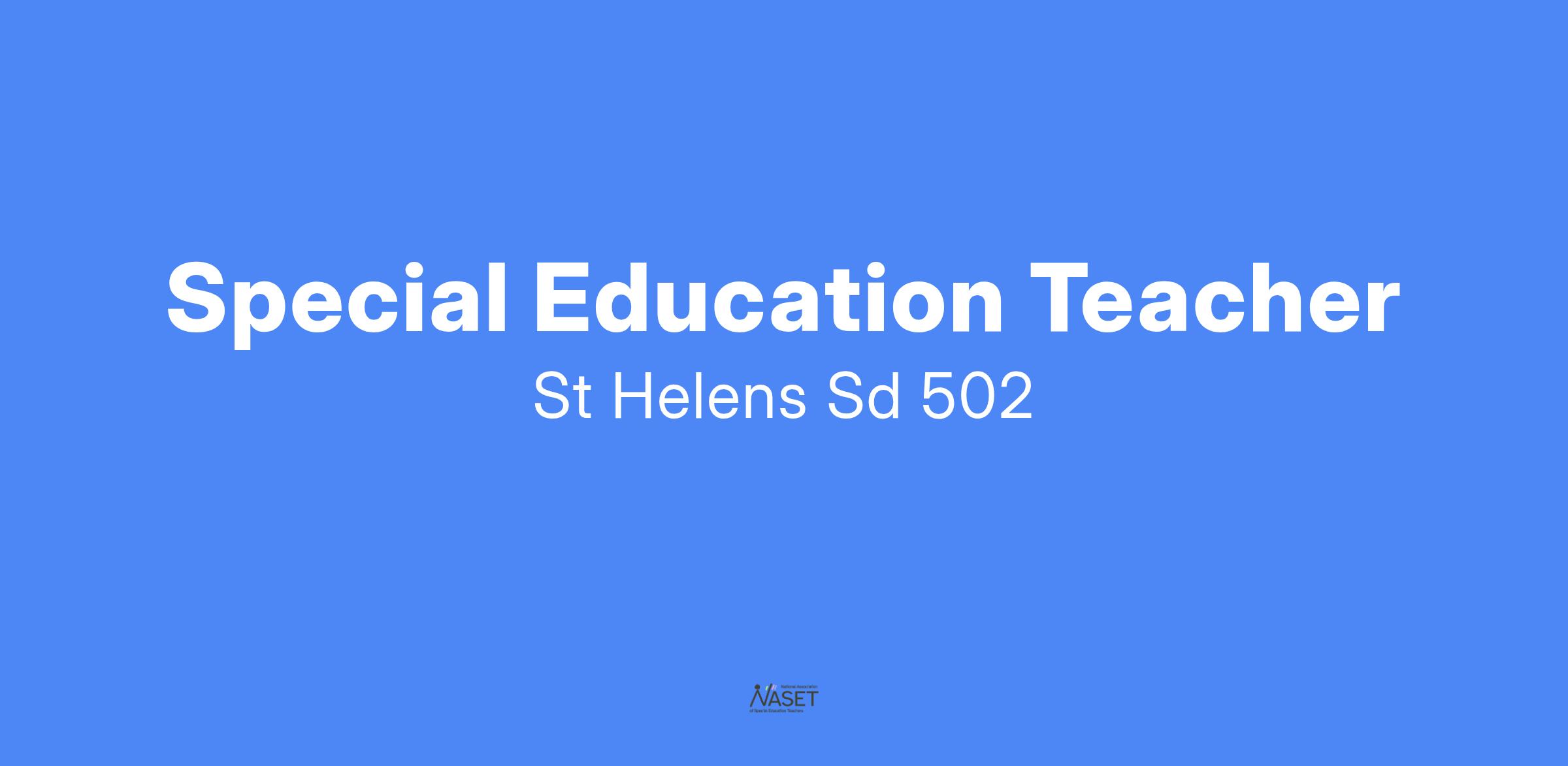 The St. Helens School District is accepting applications for a full time (40 hours per week) Teacher - Special Education position. We encourage candidates with a background in Special Education, Behavior Management and Social Work to consider applying for this position.