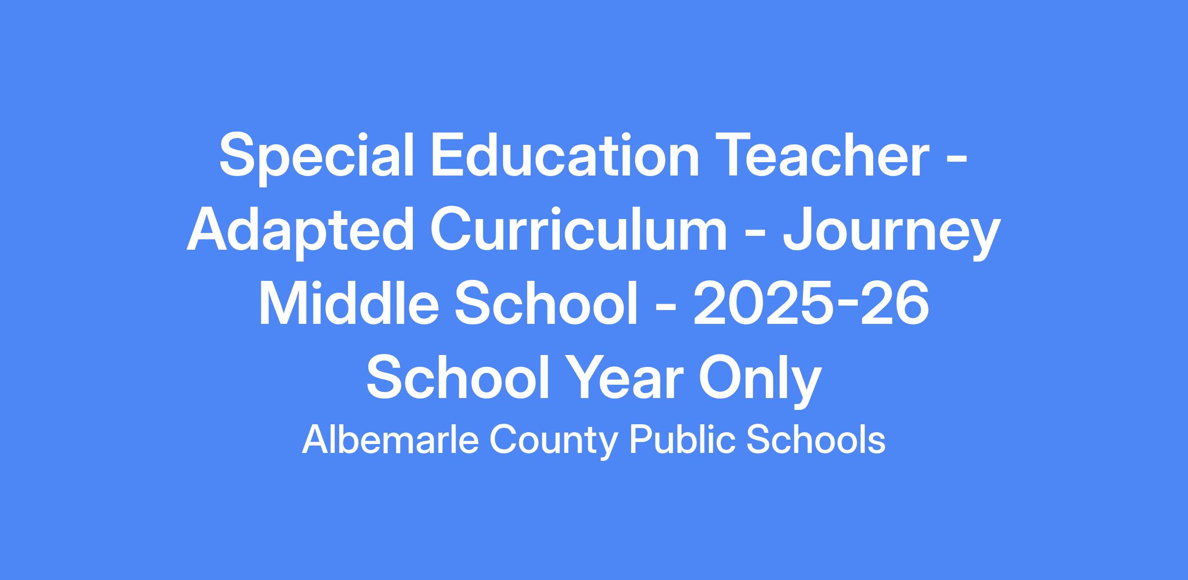 Special Education Teacher - Adapted Curriculum