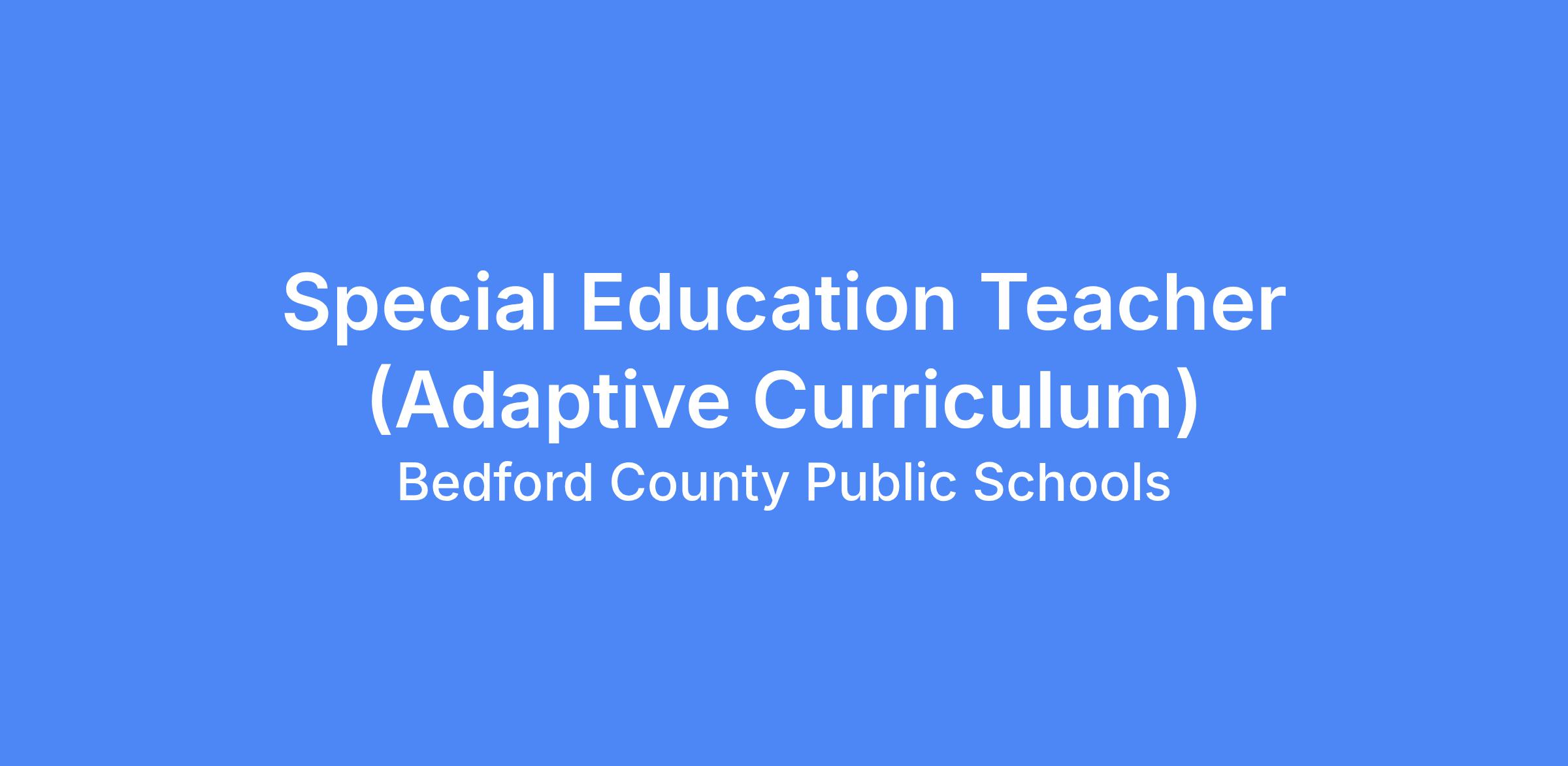 This job description in no way states or implies that these are the only duties to be performed by this employee. The Special Education Teacher will be required to follow any other instructions and to perform any other related duties as assigned by the Principal or appropriate administrator. Bedford County Public Schools reserves the right to update, revise or change this job description and related duties at any time.