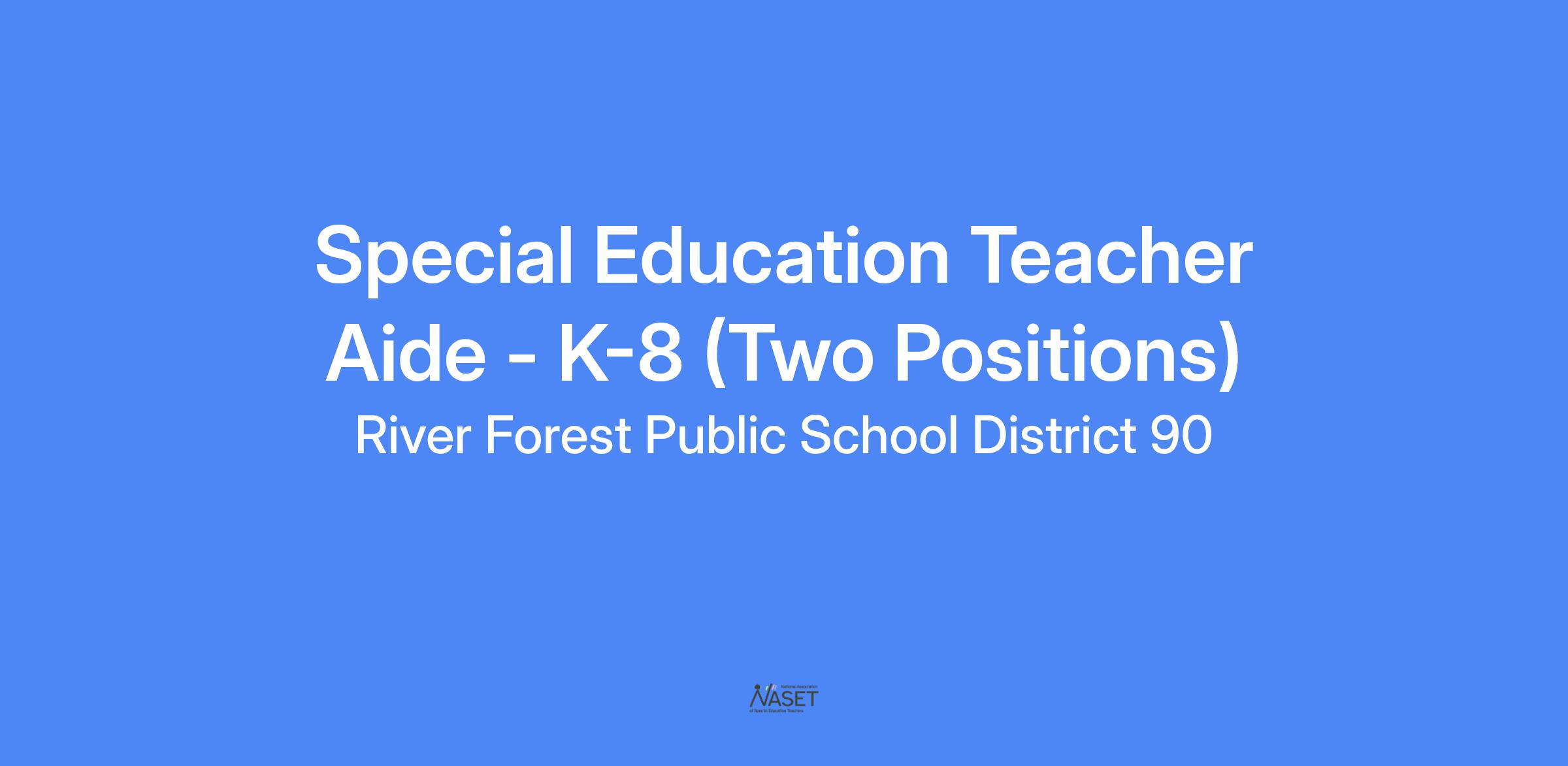 The Special Education Teacher Aide is to integrate D90 practices around equity and inclusivity into daily work and relationships with students, families, and colleagues. They will also attend to other duties as assigned by their Special Education Case Manager/Teacher, Building Principal, Director of Special Education or Superintendent.